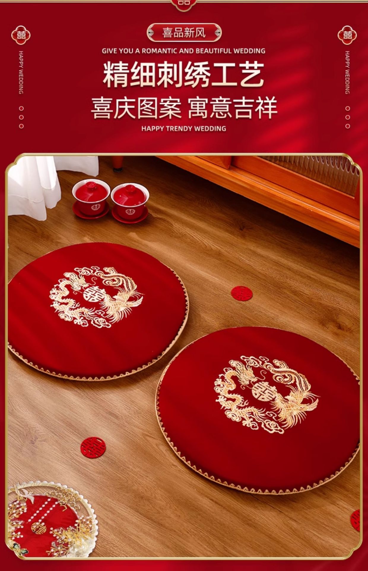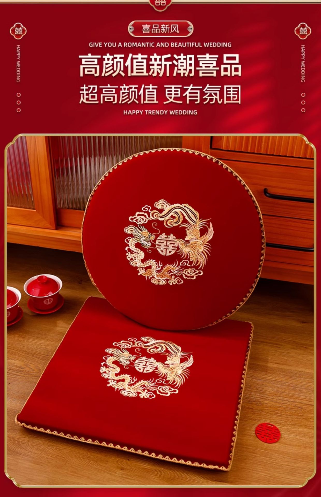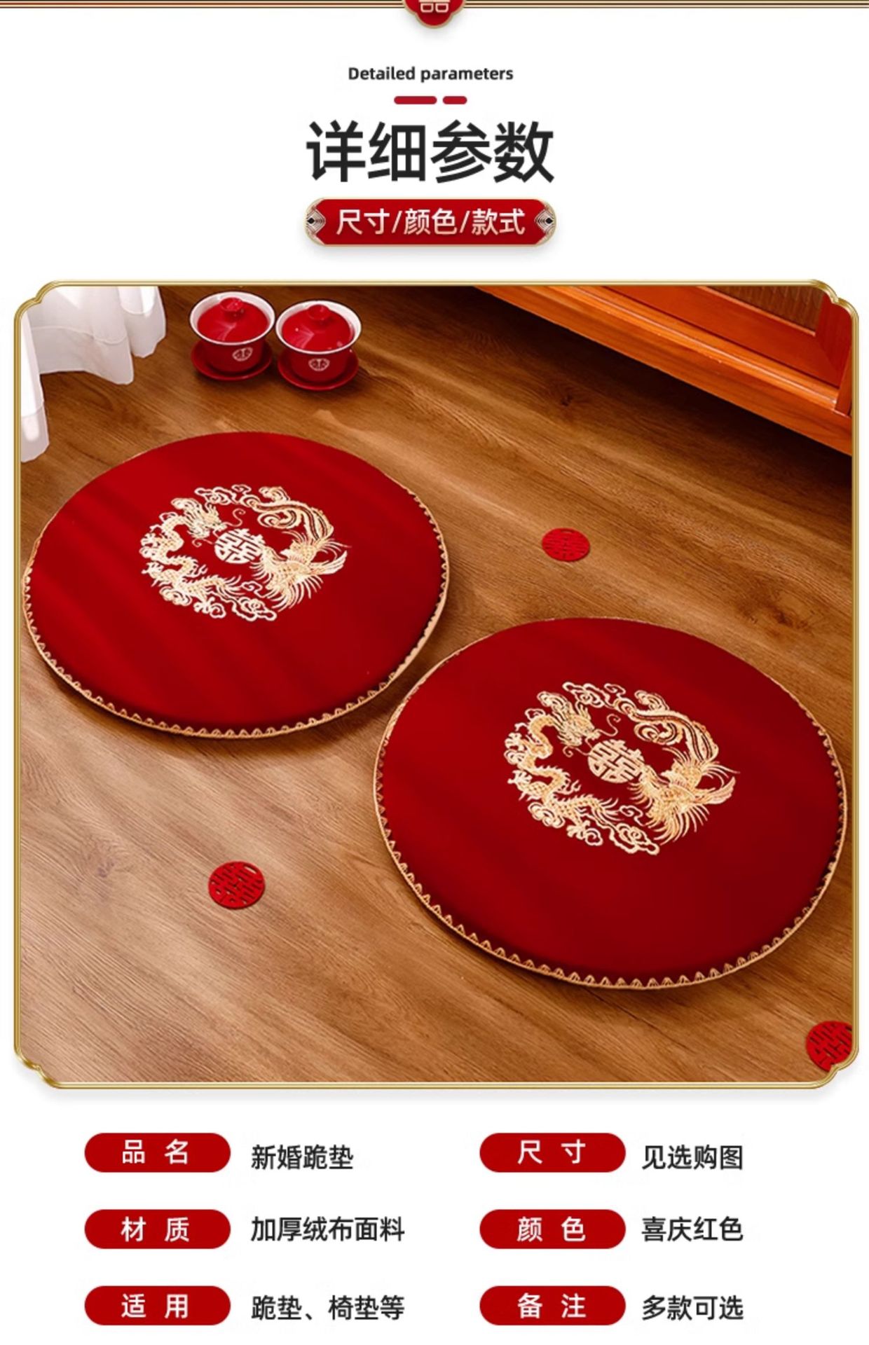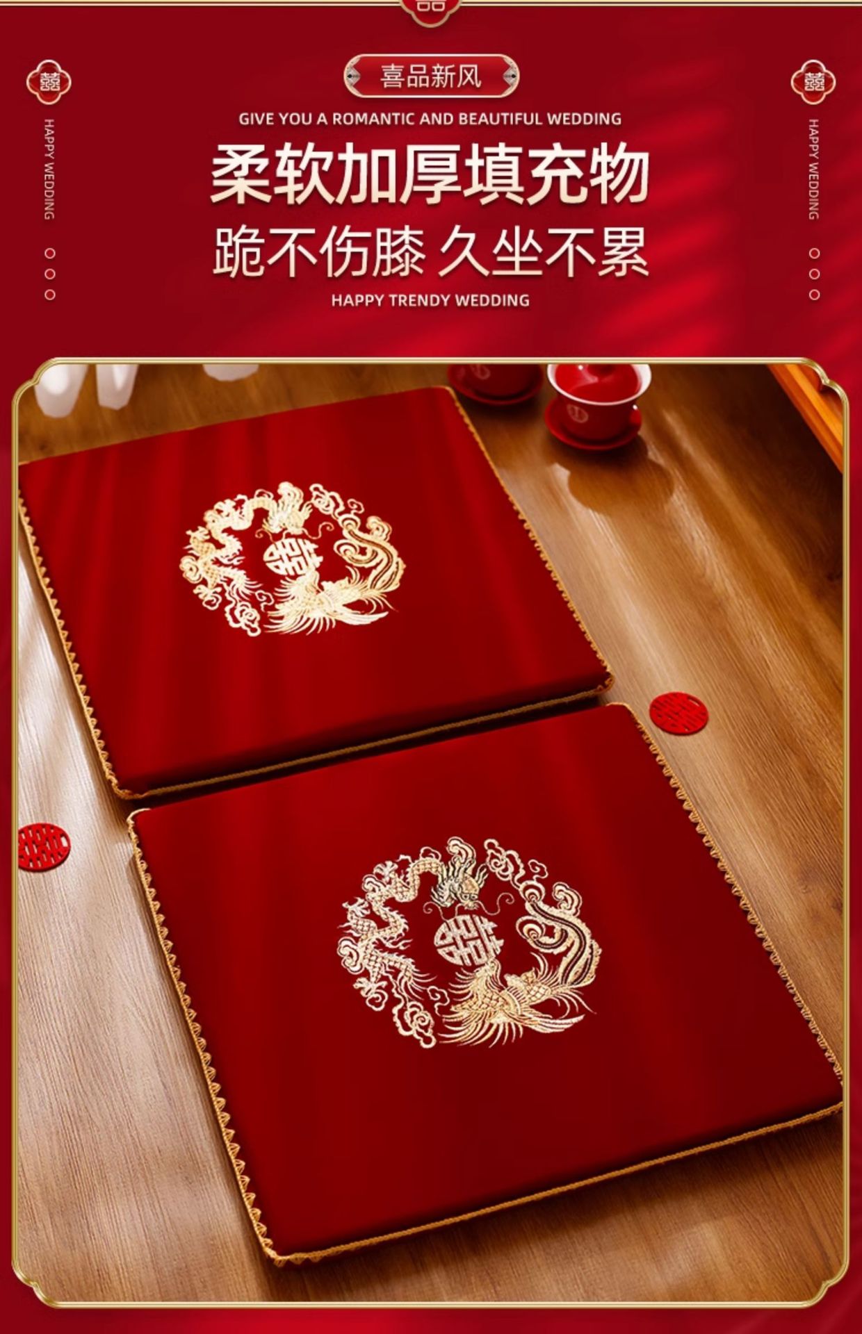 결혼식 무릎꿇기 쿠션, 차를 마시는 무릎꿇기 쿠션 한 쌍, 붉은 결혼식, 신부의 행복한 말과 축복 쿠션 세트 용품