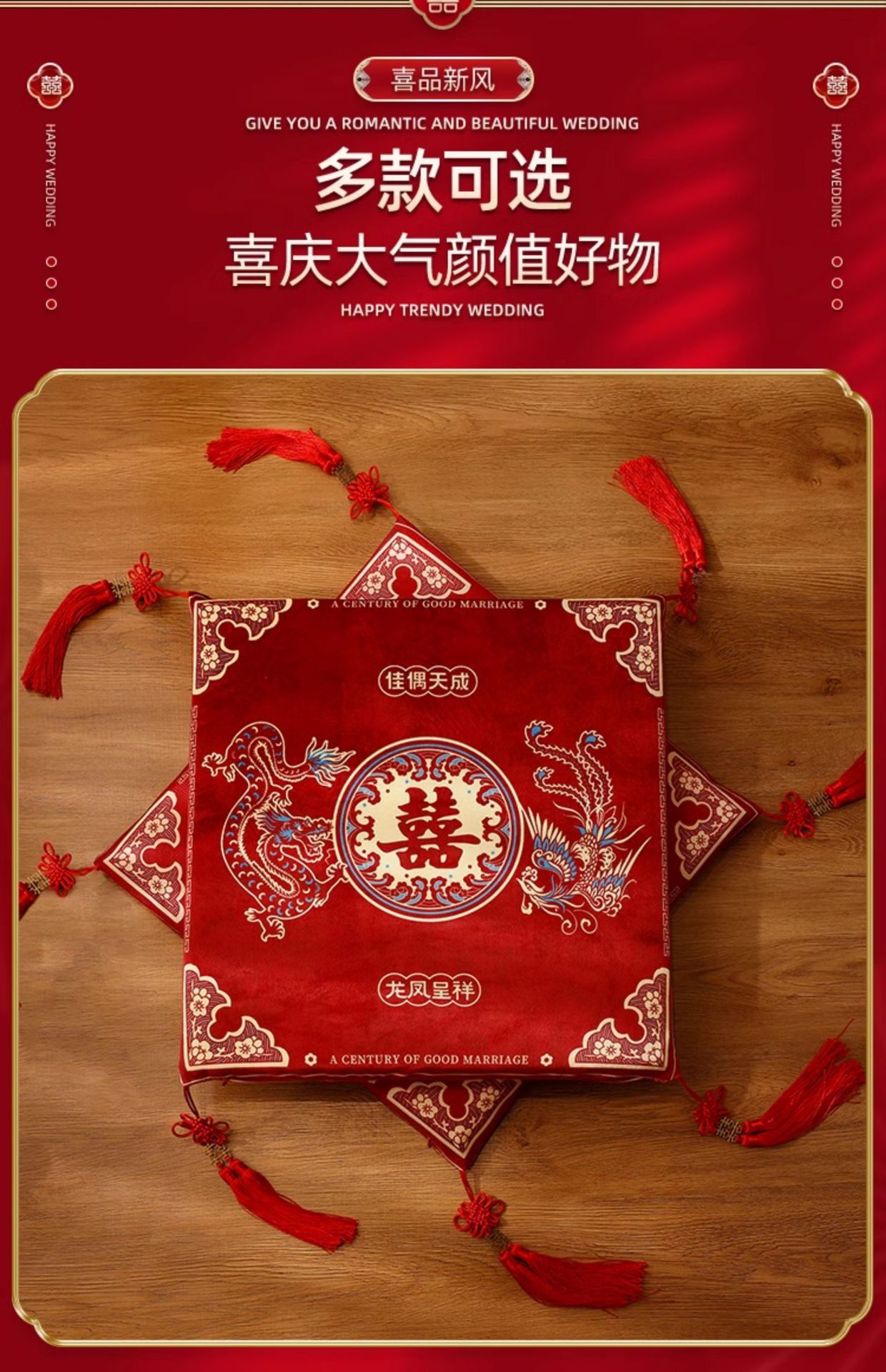 • 용과 봉황 [한 쌍의 무릎을 꿇은 행복 쿠션] 술 스타일
