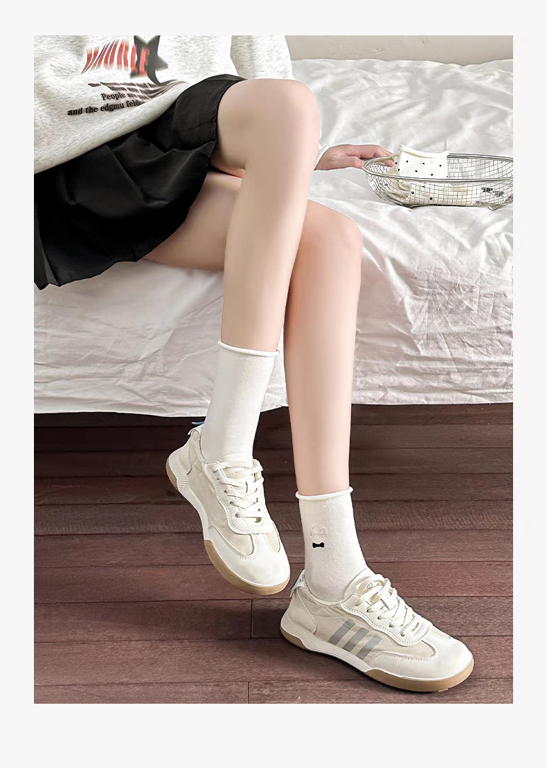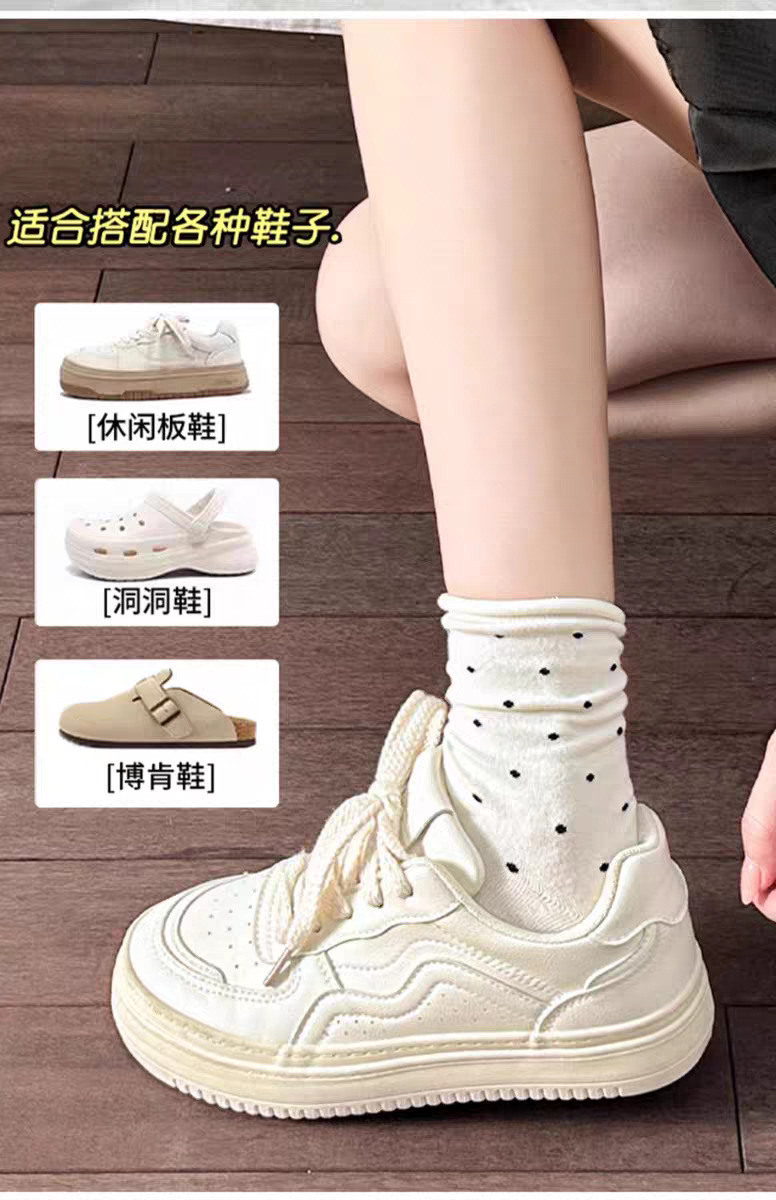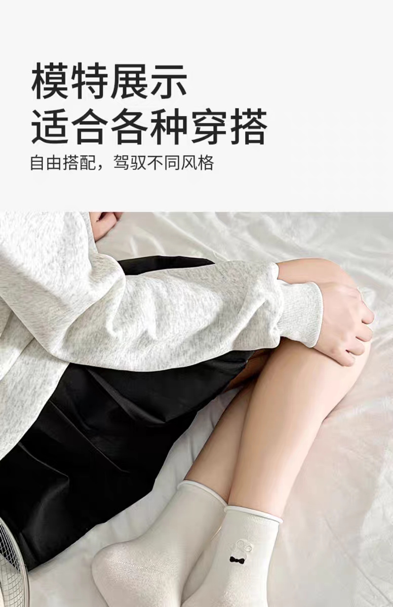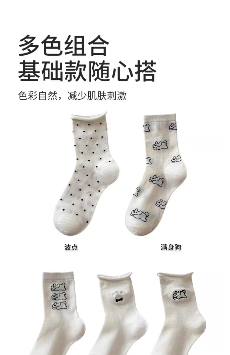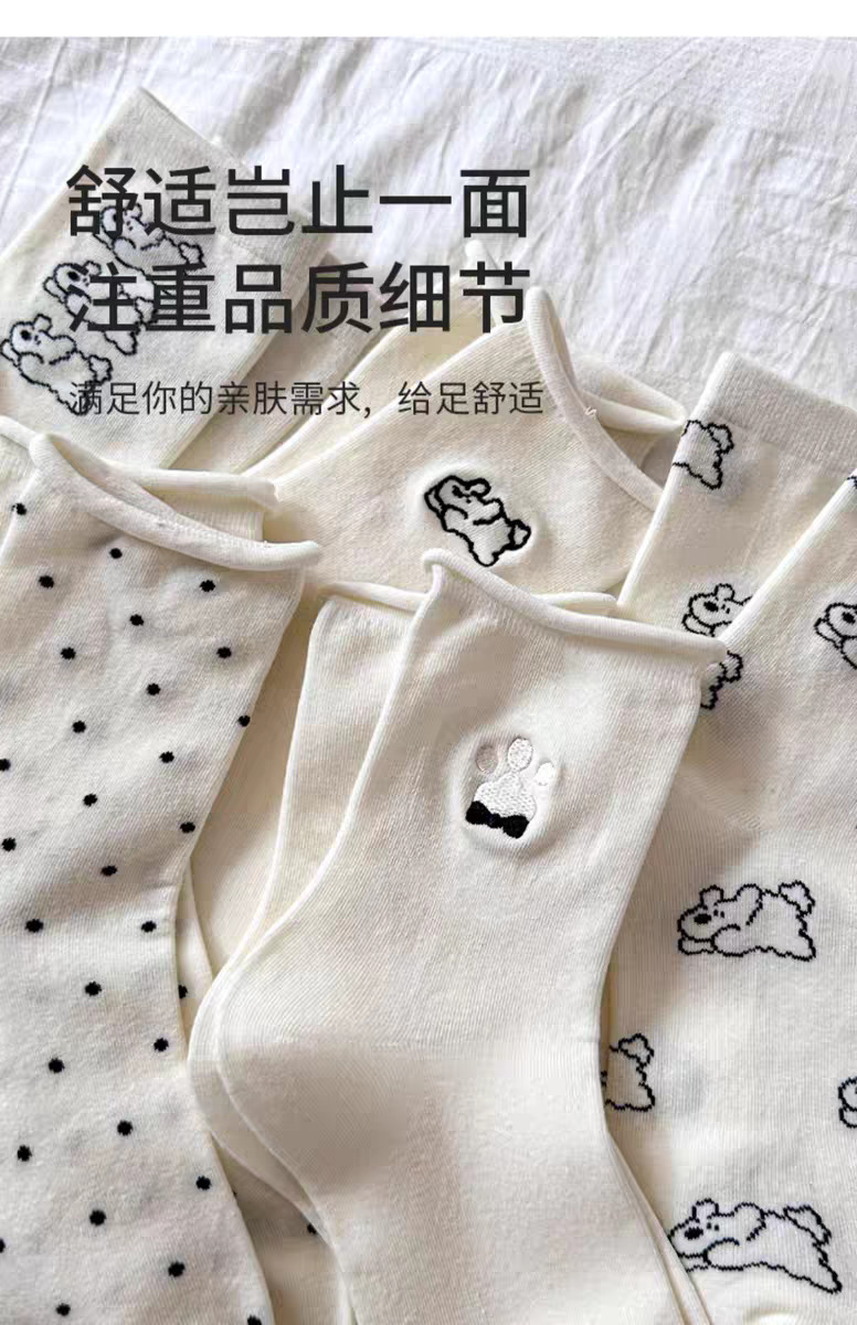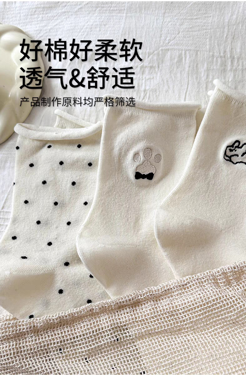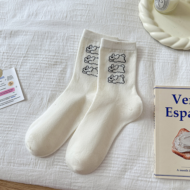 여성용 자수 강아지 양말, 인스타 감성 중목 양말, 순면, 주름 장식, 통기성, 땀 흡수, 냄새 방지, 인스타 스타일, 다용도스토어 가기