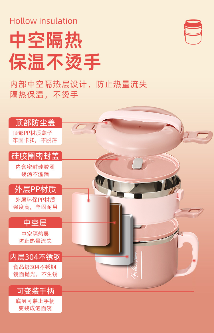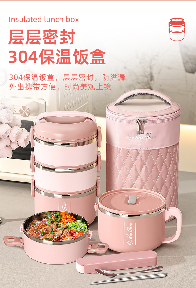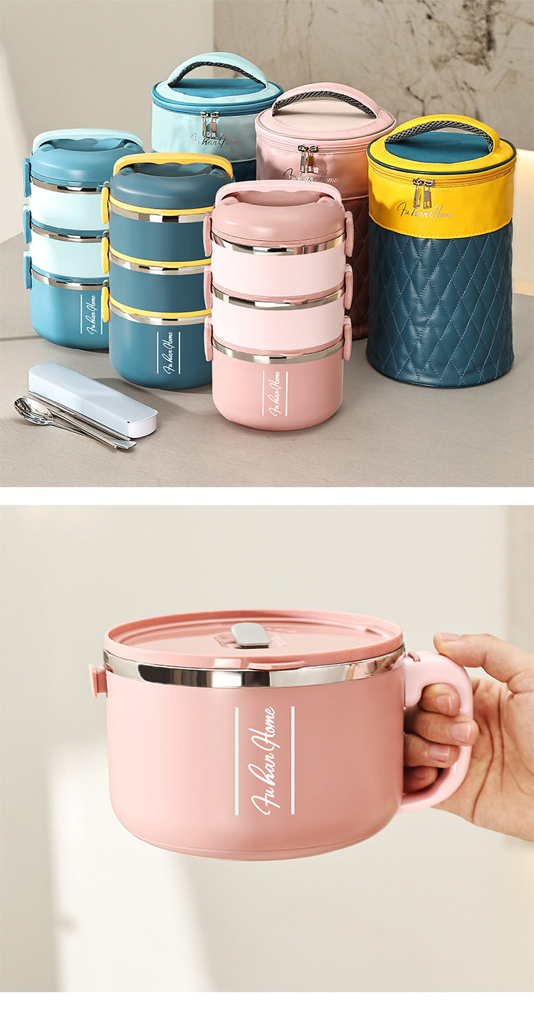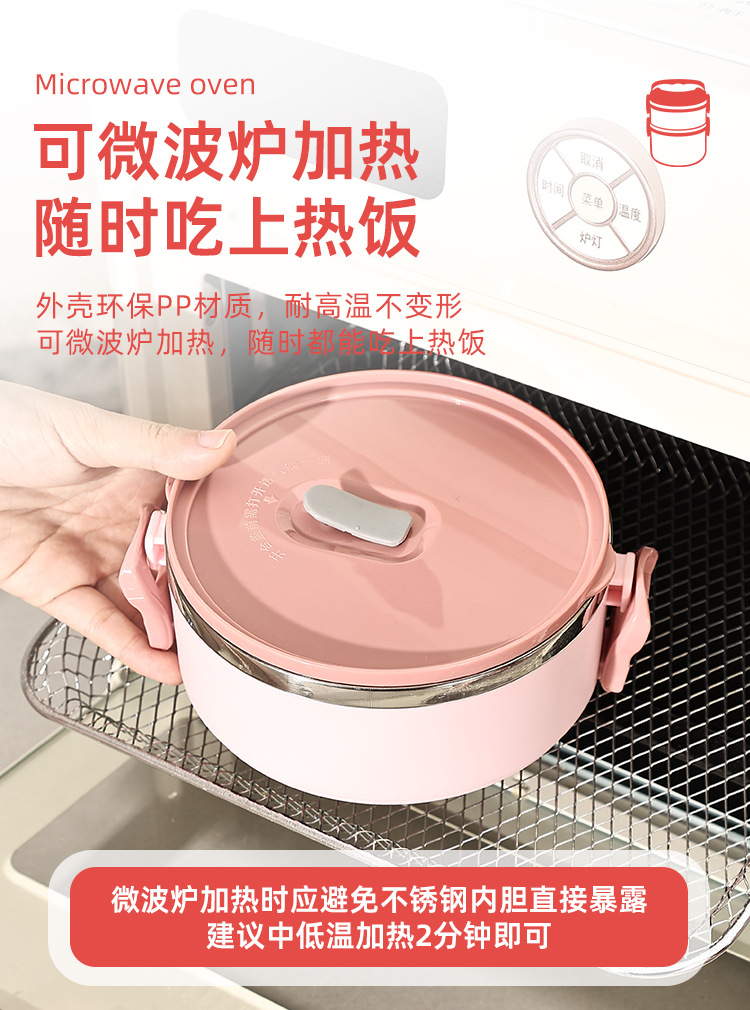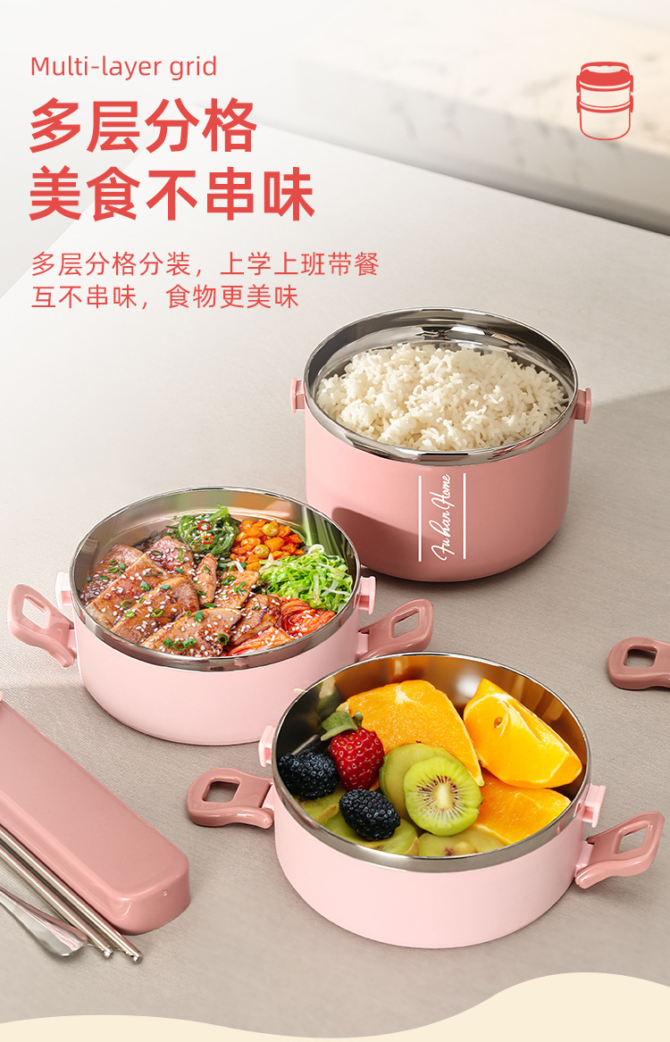 직장인을 위한 선물용 원형 도시락통, 휴대용 다층 단열 도시락통, 대용량 도시락통, 스테인리스 도시락통