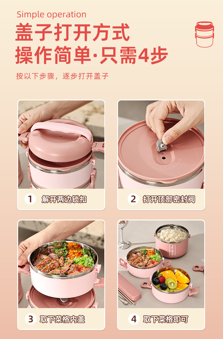 직장인을 위한 선물용 원형 도시락통, 휴대용 다층 단열 도시락통, 대용량 도시락통, 스테인리스 도시락통스토어 가기