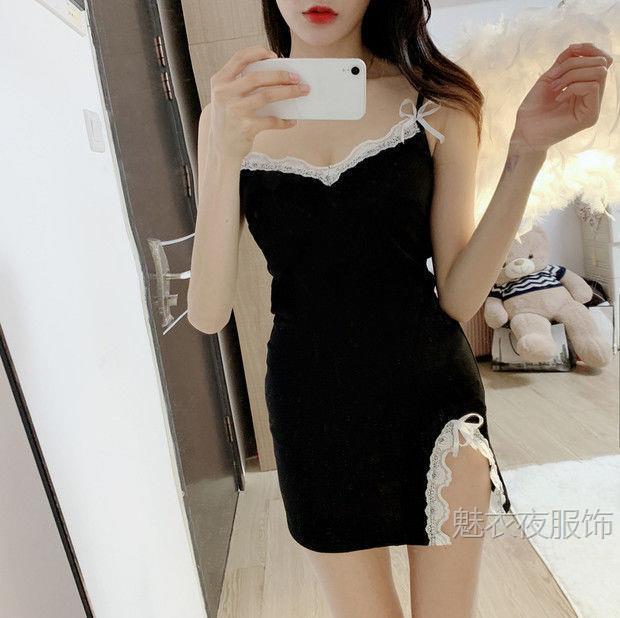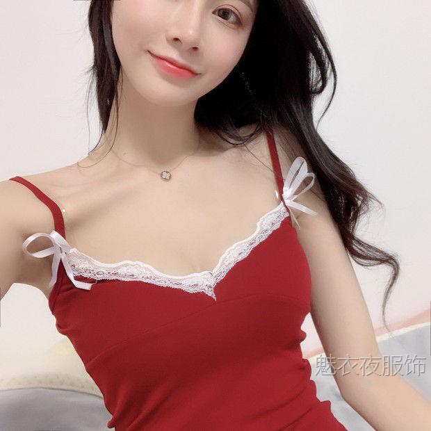인터넷 연예인 서스펜더 잠옷 여성 스커트 여름 섹시하고 귀여운 슬림 피트 순수한 욕망 스타일 레이스 가슴 패드 잠옷 홈웨어 1361