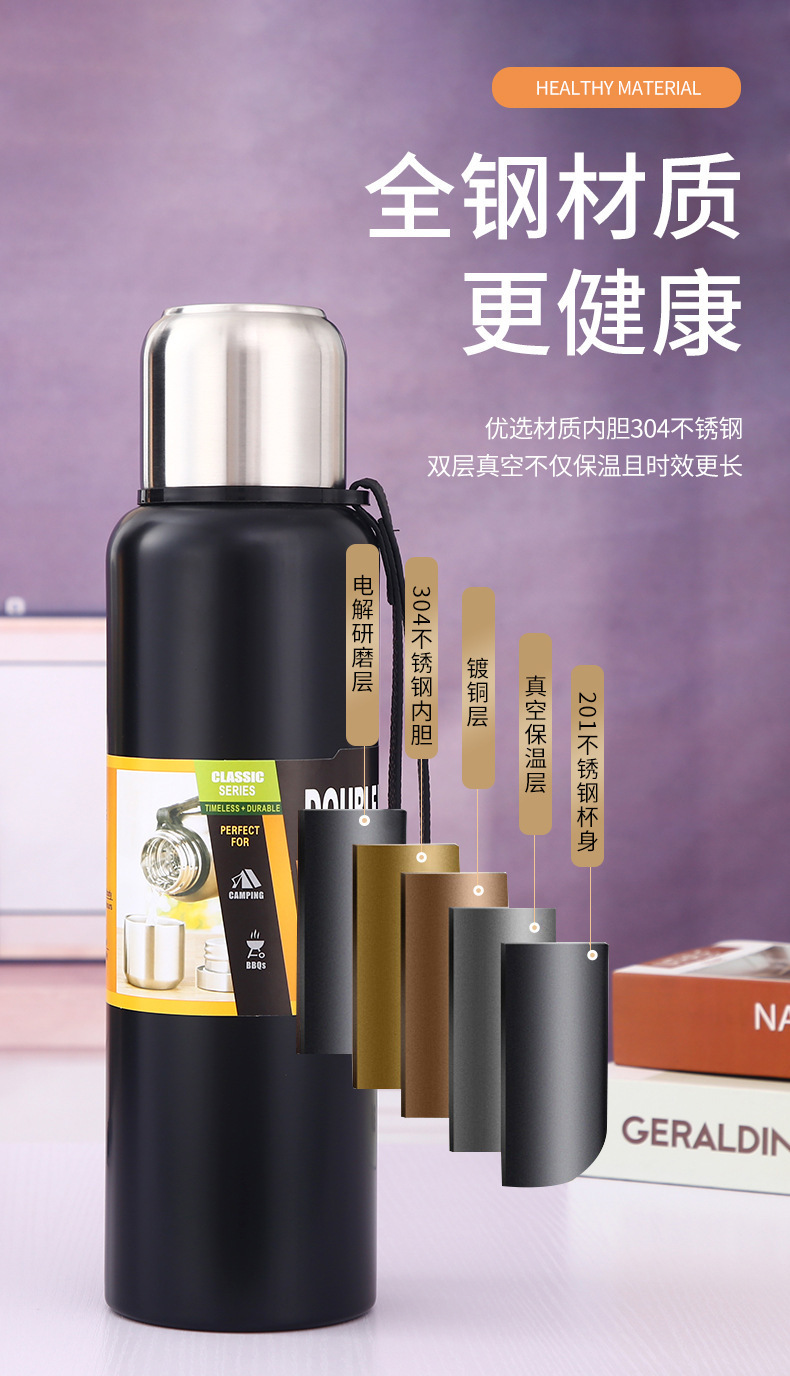 국경 간 전체 강철 진공 304 스테인레스 스틸 절연 컵 대용량 야외 스포츠 물병 휴대용 여행 등산 주전자