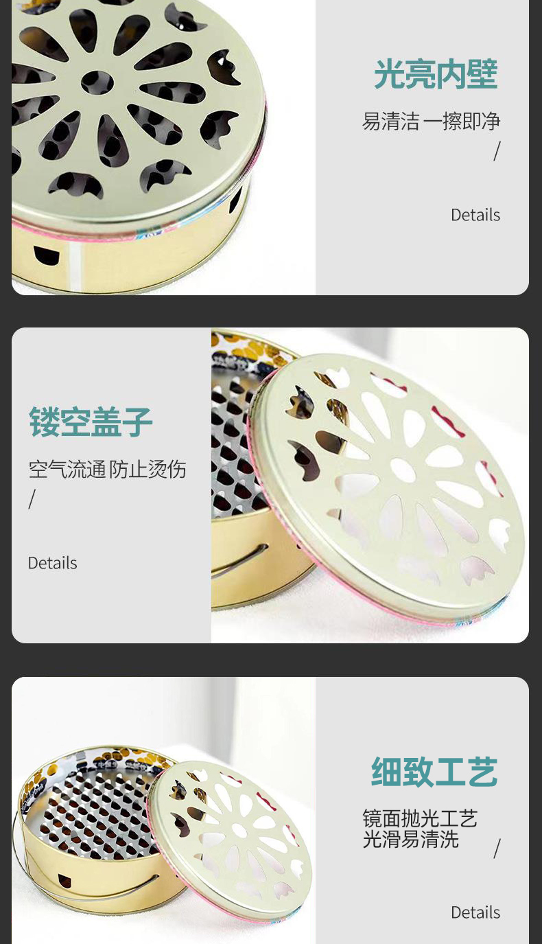 방화 모기향 상자, 가정용 스테인레스 스틸 모기향 트레이, 뚜껑 포함, 모기 퇴치 상자, 모기향 선반, 창의적인 먼지 트레이, 모기향 스토브