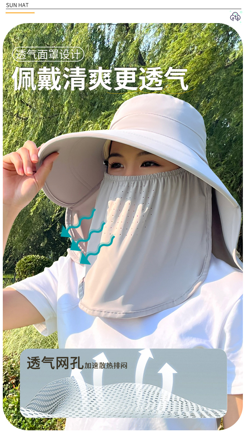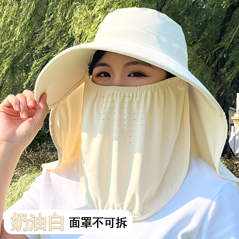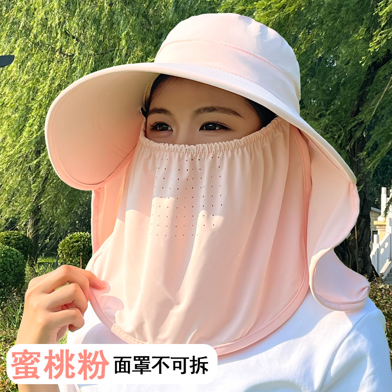 얼음 실크 태양 모자 여성용 태양 보호 마스크 새로운 얼굴 커버 통기성 다목적 여름 야외 차 따기 태양 모자 제조 업체스토어 가기