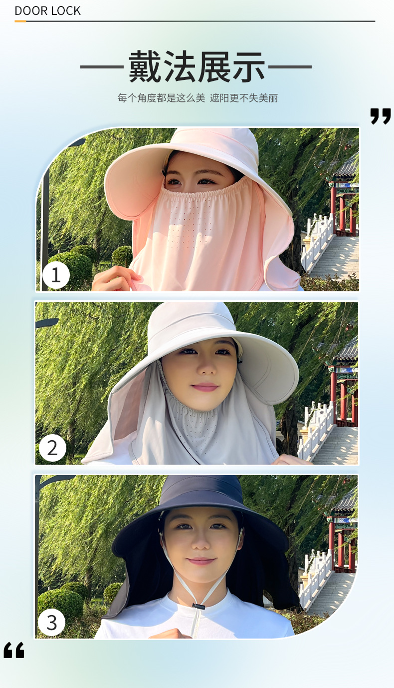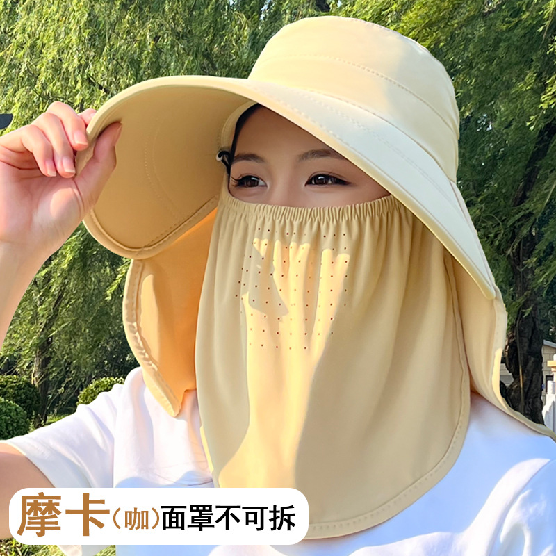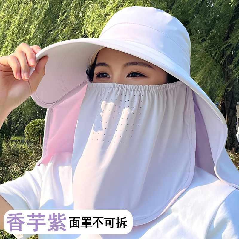 얼음 실크 태양 모자 여성용 태양 보호 마스크 새로운 얼굴 커버 통기성 다목적 여름 야외 차 따기 태양 모자 제조 업체