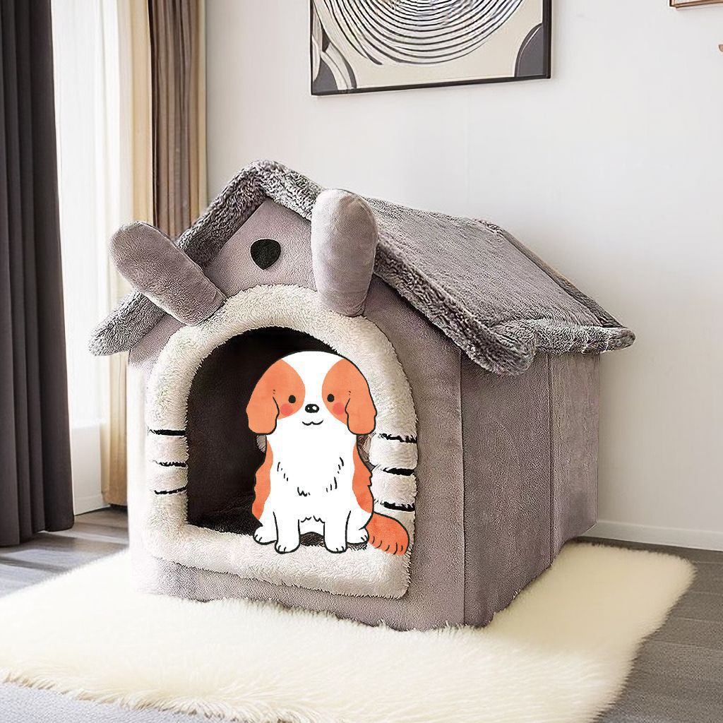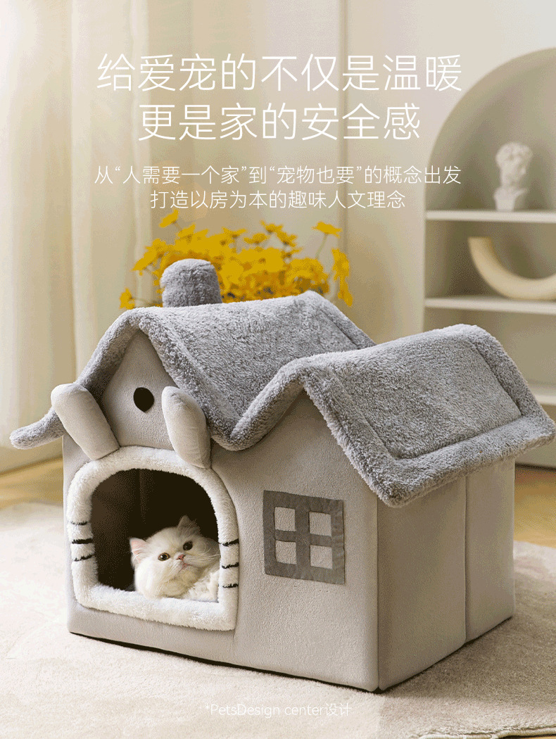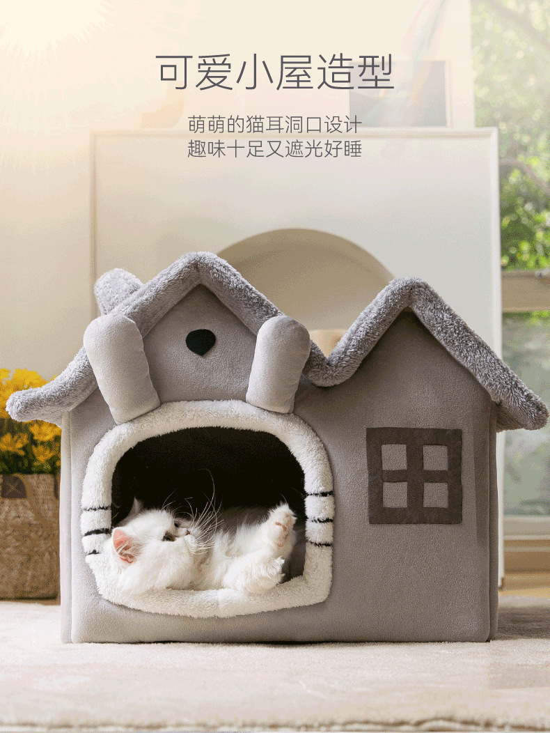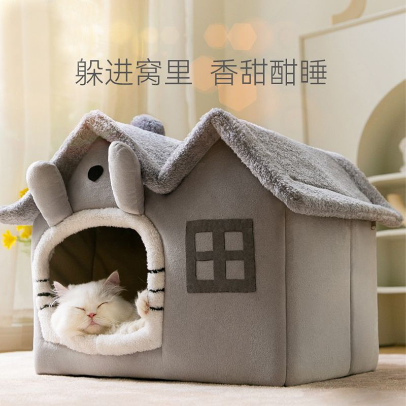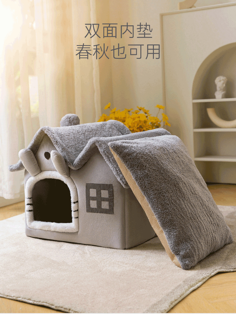 【핫세일 10w+】탈부착 가능한 이중 지붕 강아지 집 고양이 빌라 가을 겨울 따뜻한 침대 고양이 둥지 소형견 집