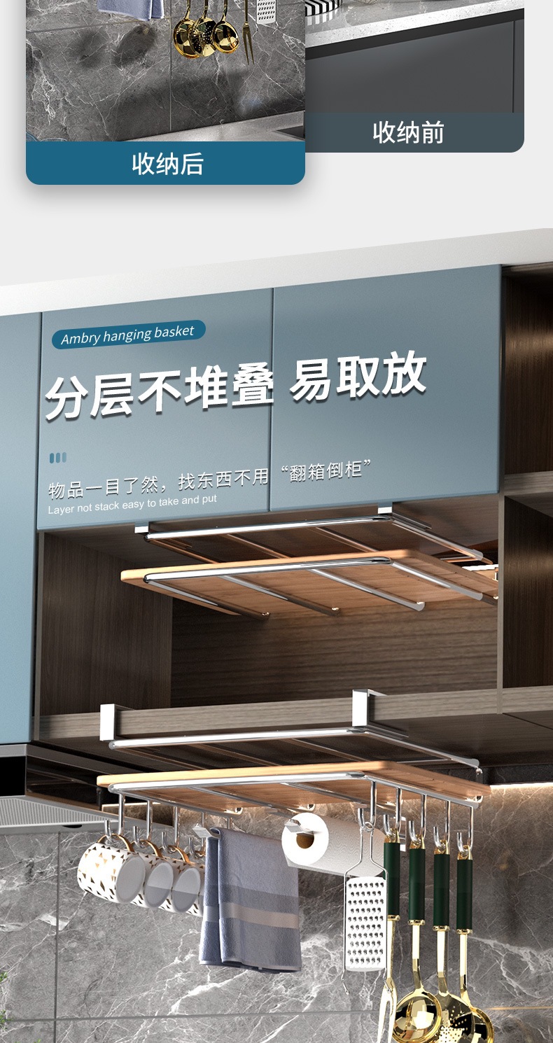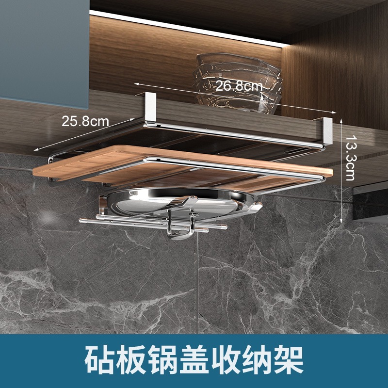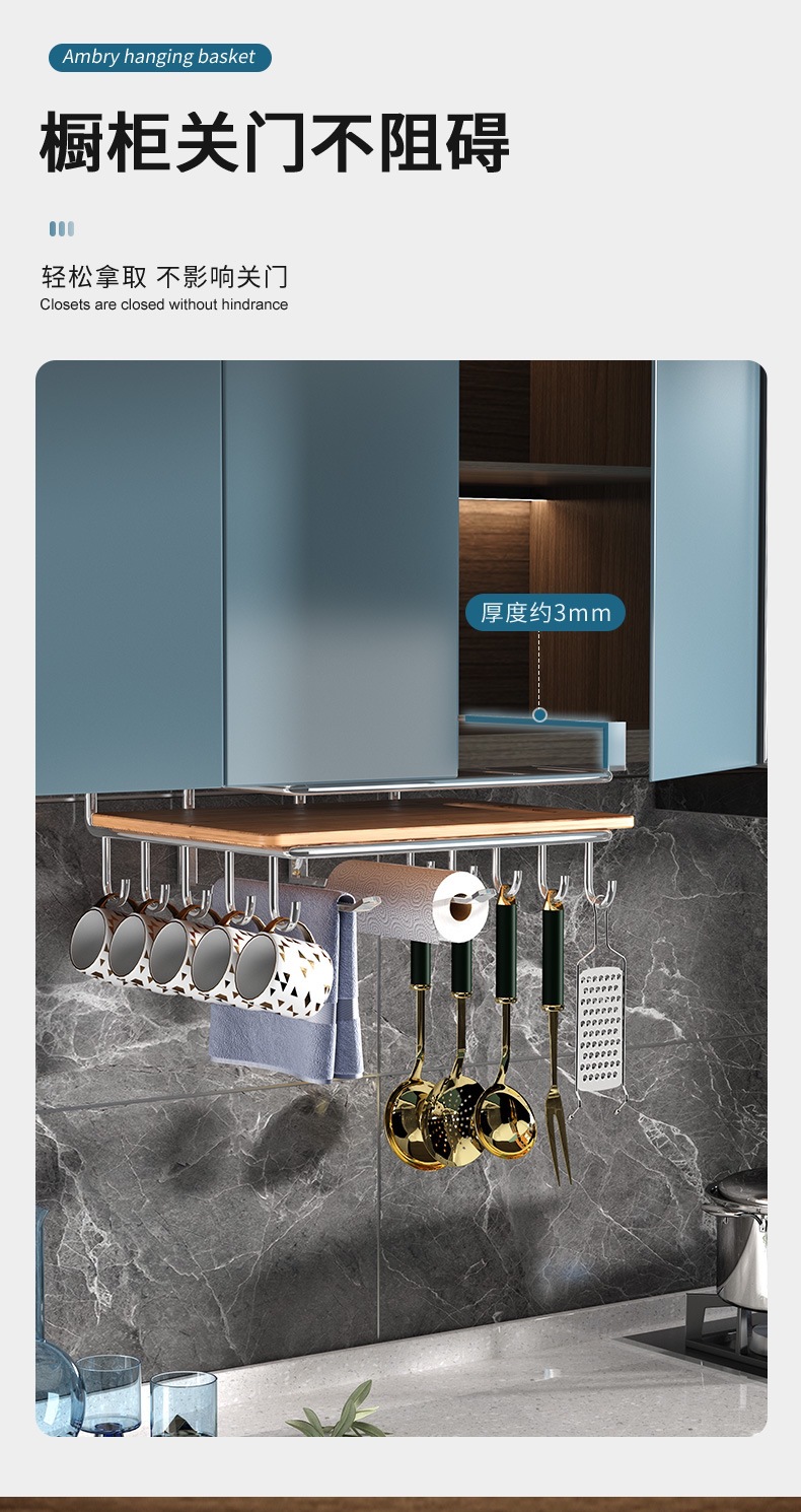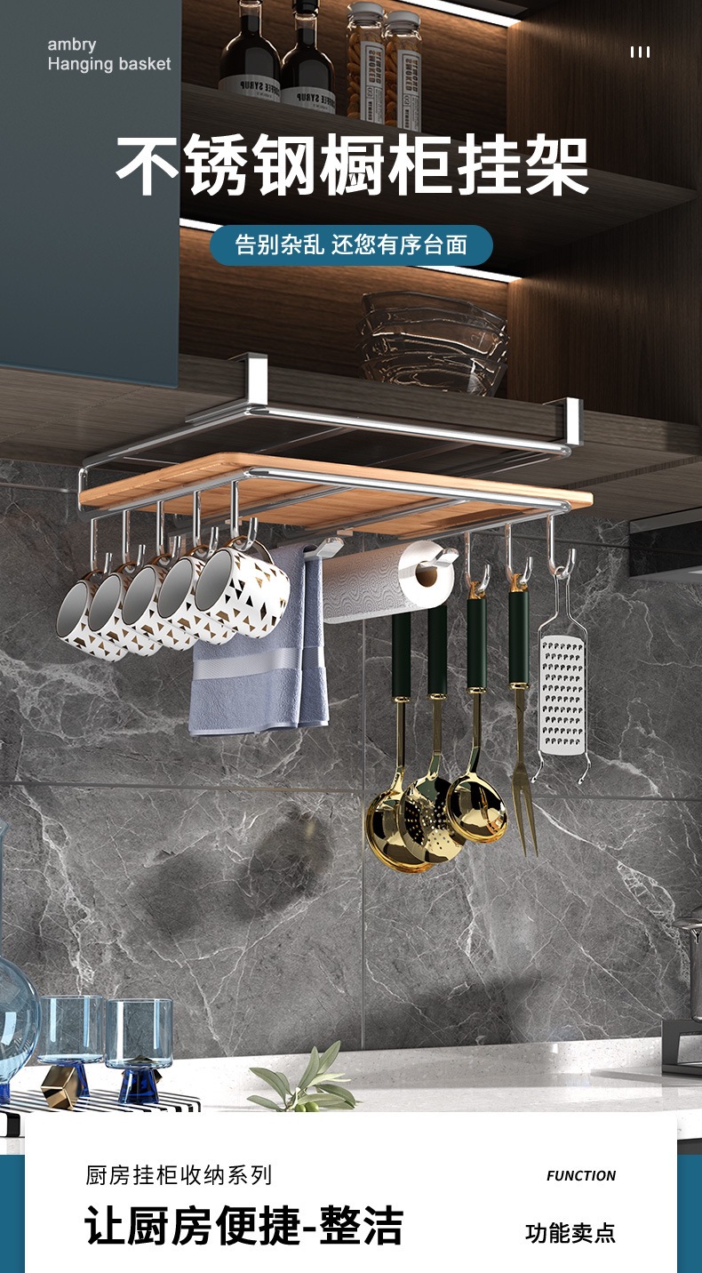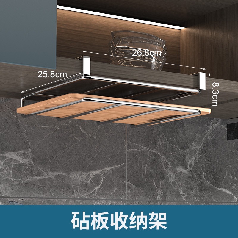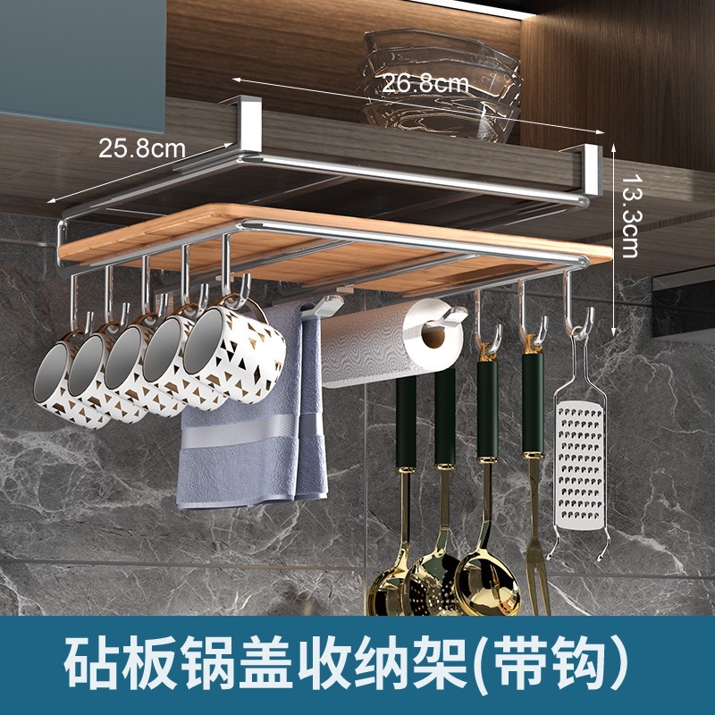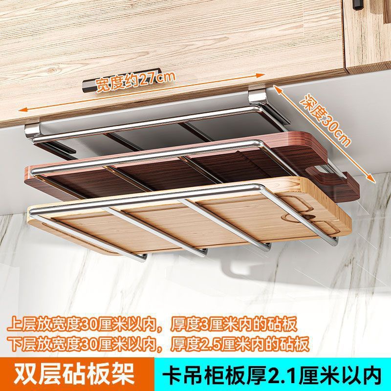 캐비닛 수납선반, 펀치 없는 도마 걸이, 벽걸이 주방 수납선반, 2단 304 스테인리스 컵홀더
