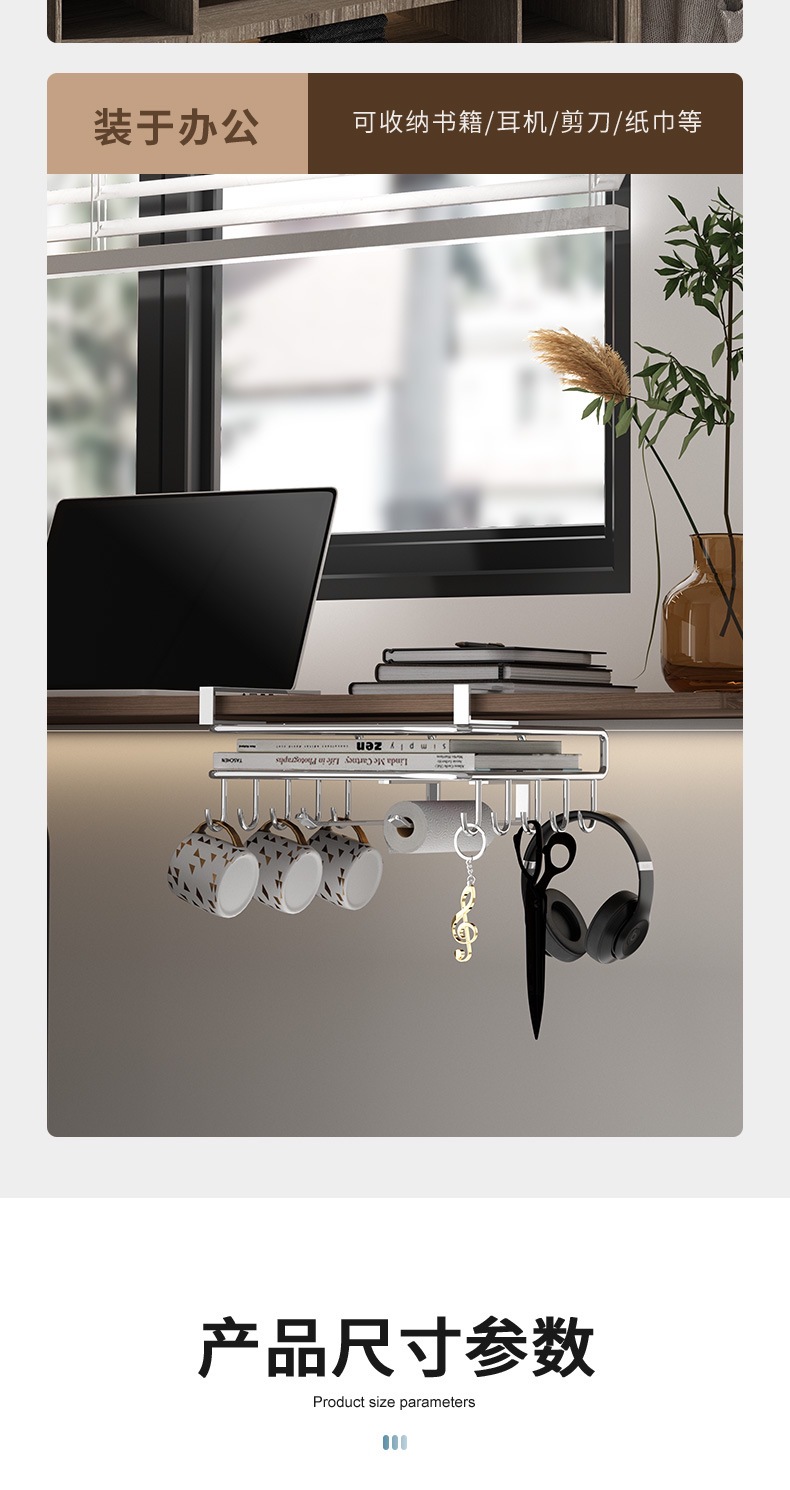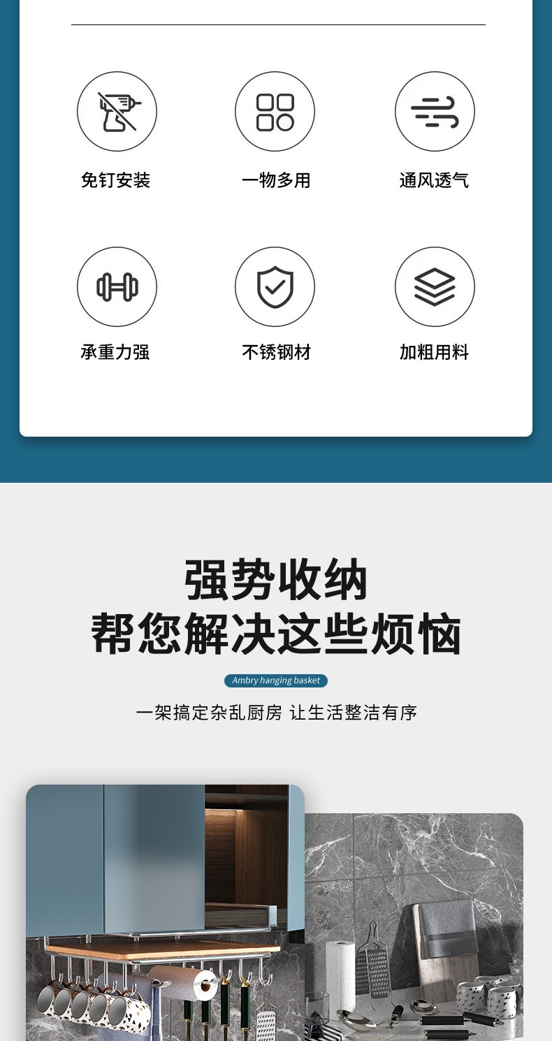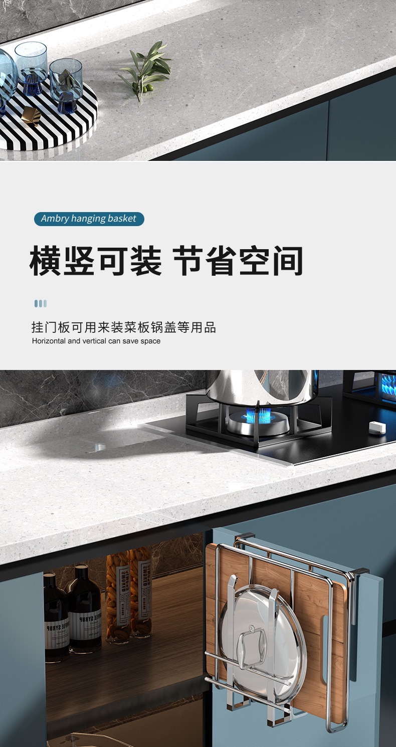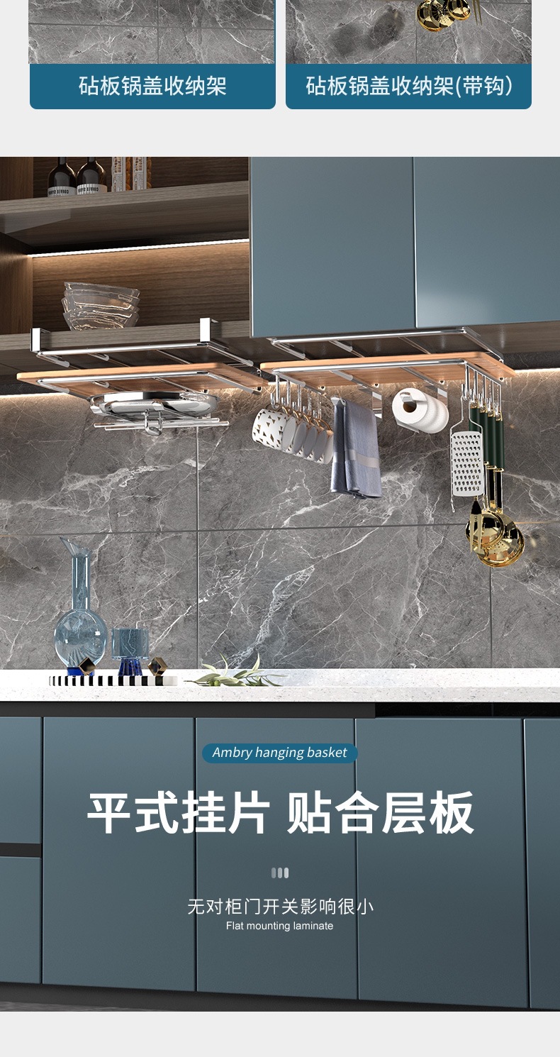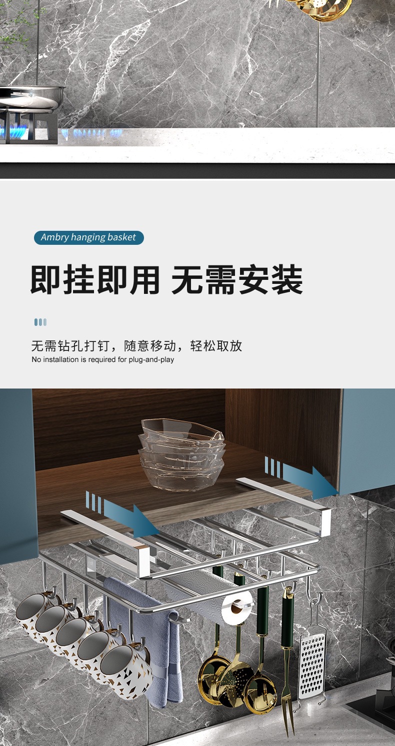 캐비닛 수납선반, 펀치 없는 도마 걸이, 벽걸이 주방 수납선반, 2단 304 스테인리스 컵홀더