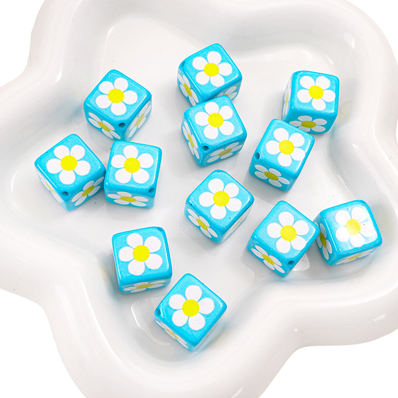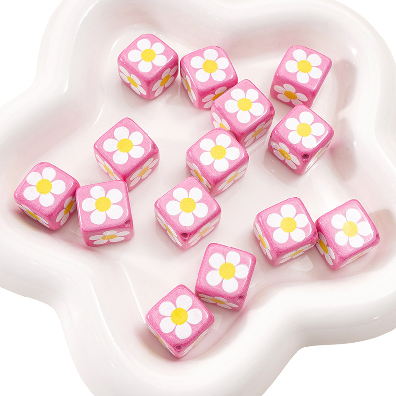 아크릴 꽃 대각선 대각선 구멍 비즈 2 조각, 루즈 비즈, 수제 DIY 팔찌, 휴대폰 체인 액세서리, 재료 패키지스토어 가기