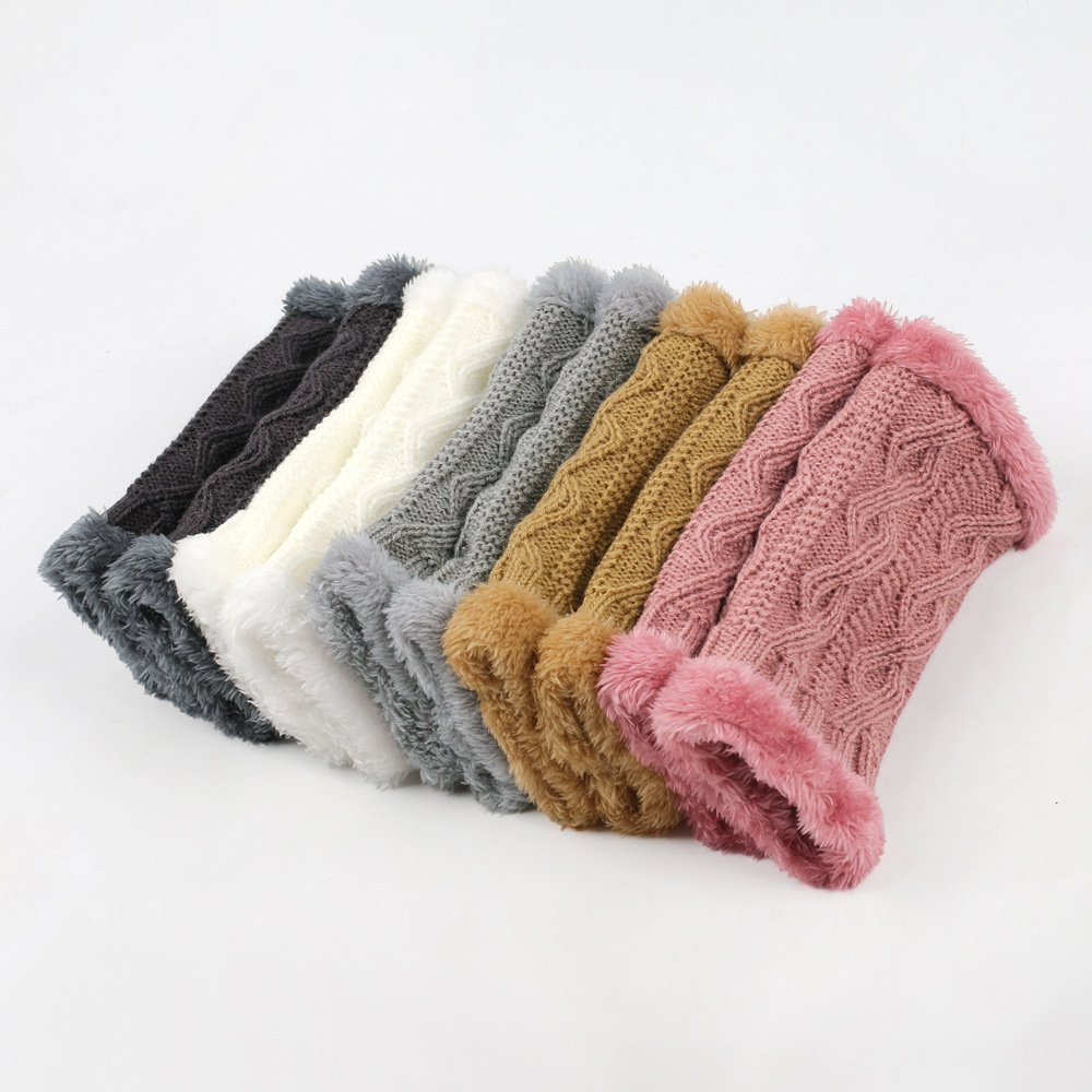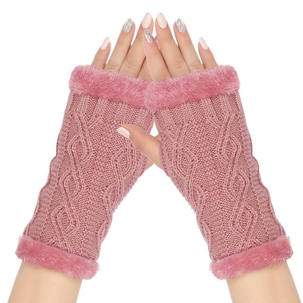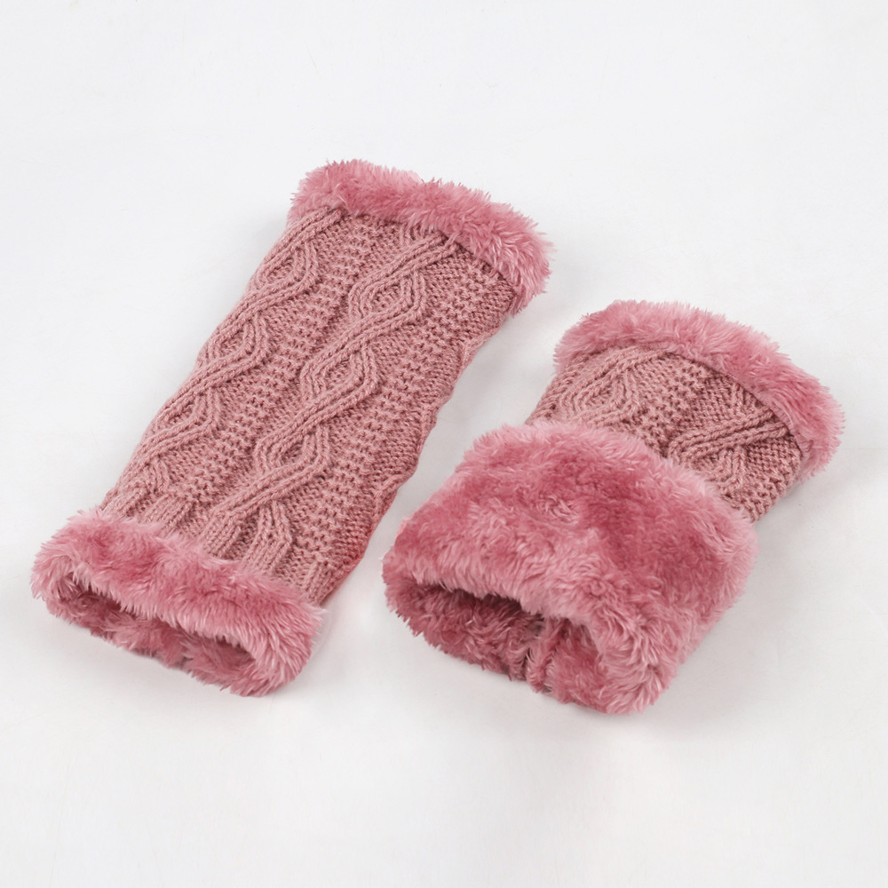 두꺼운 양털 장갑, 다이아몬드 모양의 짧은 니트 손가락 없는 플러시 슬리브, 가을 겨울 따뜻한 모피 장갑