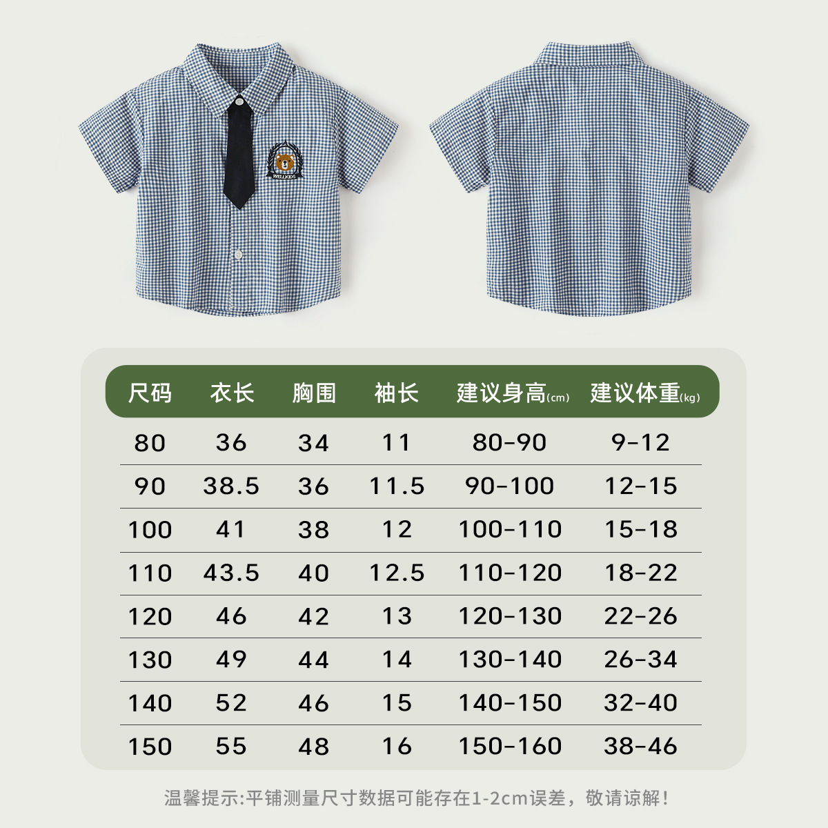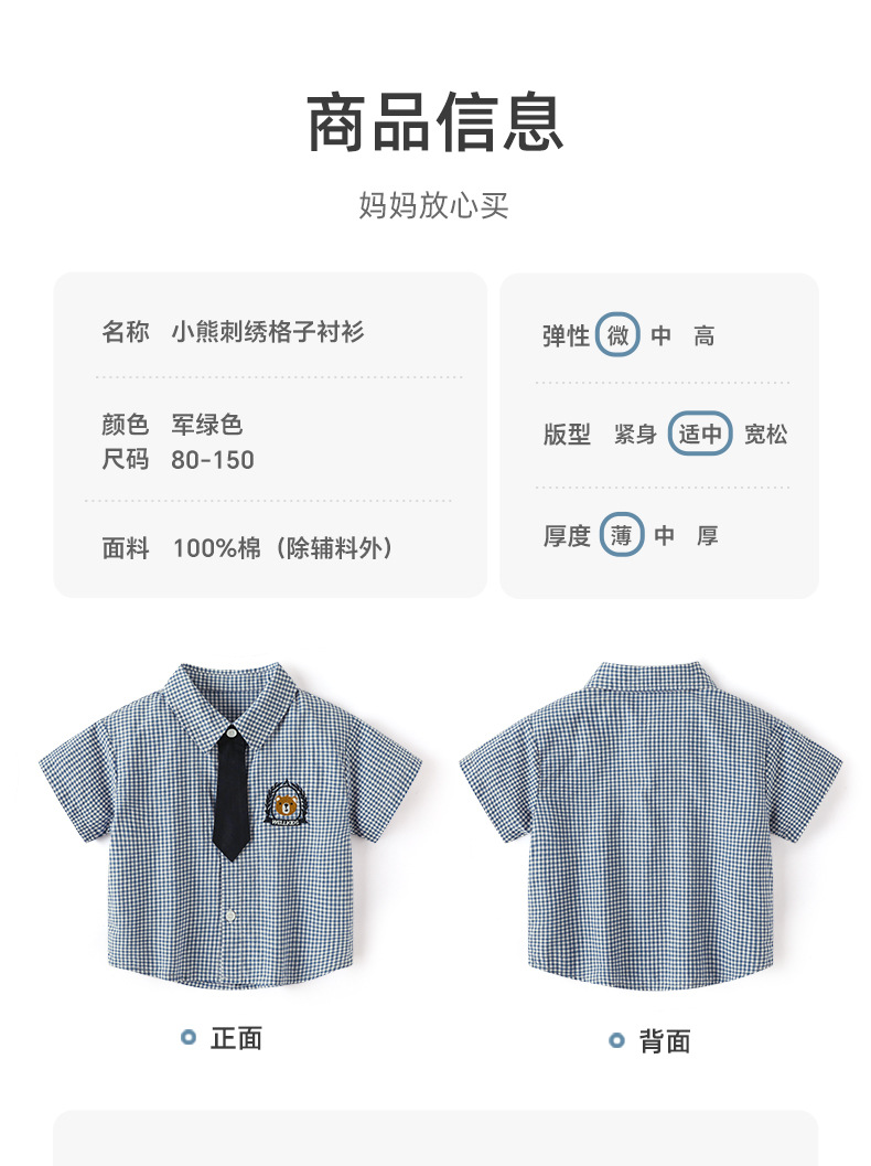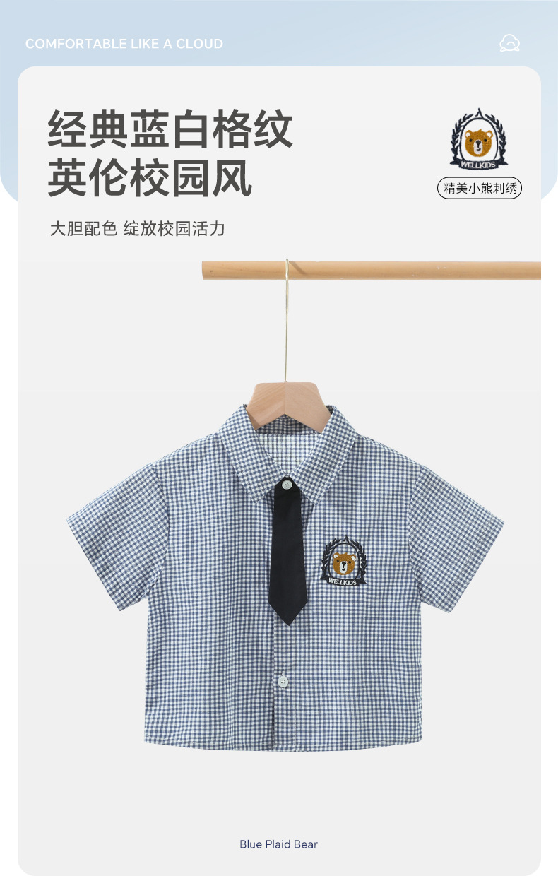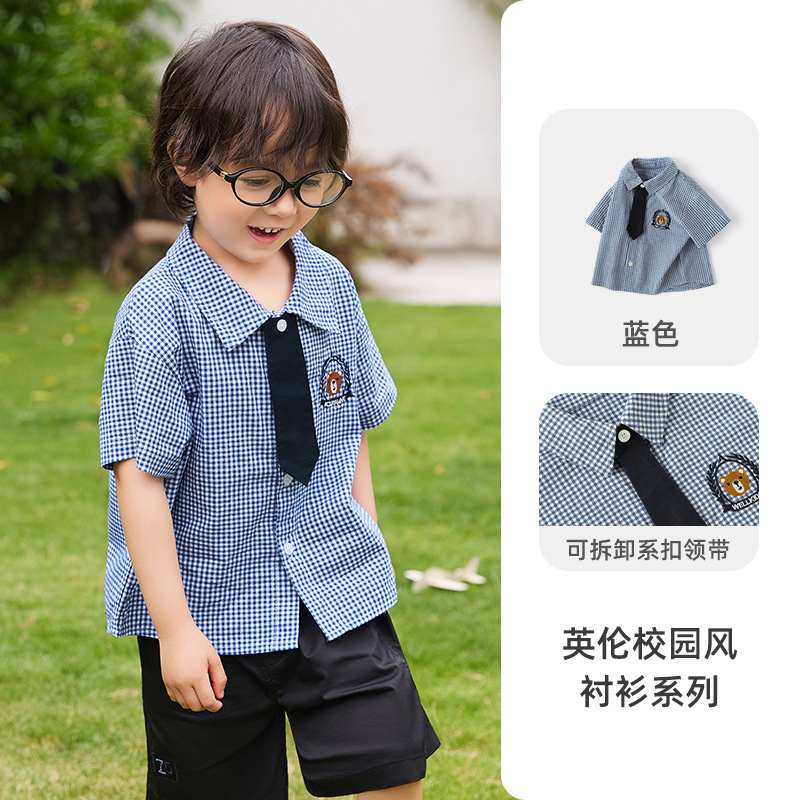 Coolwami 소년의 잘 생긴 넥타이 옷깃 격자 무늬 셔츠 아기 소년 여름 반팔 셔츠 어린이 유행 여름 옷