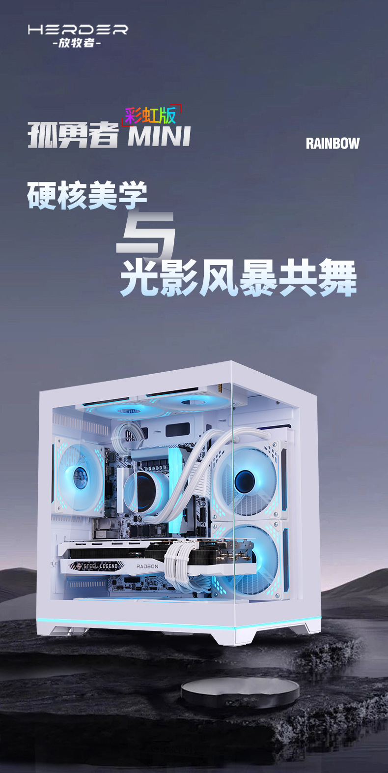 Goyongzhe MINI 레인보우 버전 데스크탑 컴퓨터 케이스 바다 전망 룸 인터넷 카페 게임 e-스포츠 케이스 제조 업체 도매