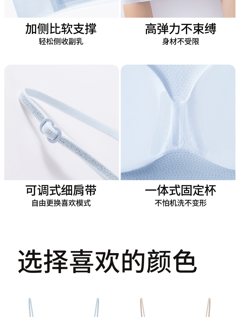 가슴이 작은 여성을 위한 시원하고 아름다운 등 브라, 새로운 핫 스타일 여름 얇은 조절 가능한 스파게티 스트랩 브라