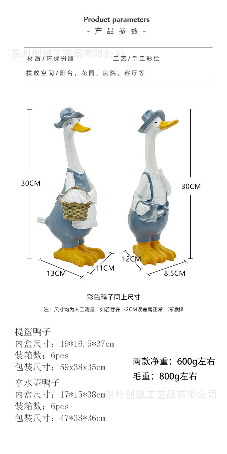 크리 에이 티브 오리 장식품 정원 장식 안뜰 미국 컨트리 발코니 레이아웃 수지 공예 동물 장식품