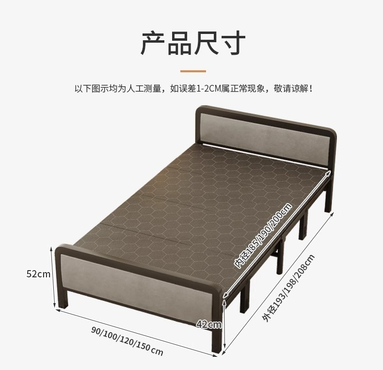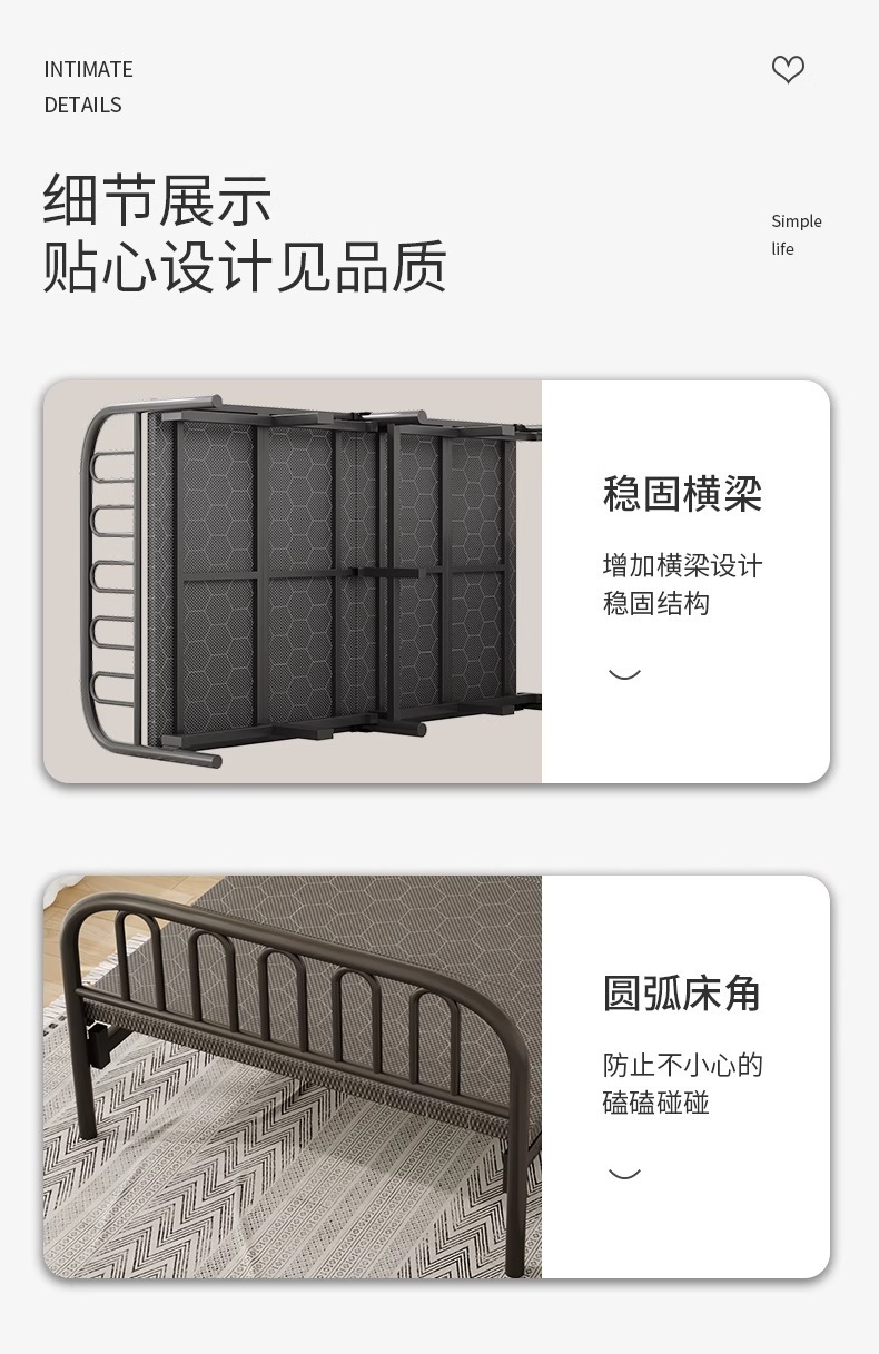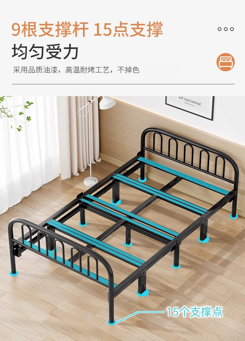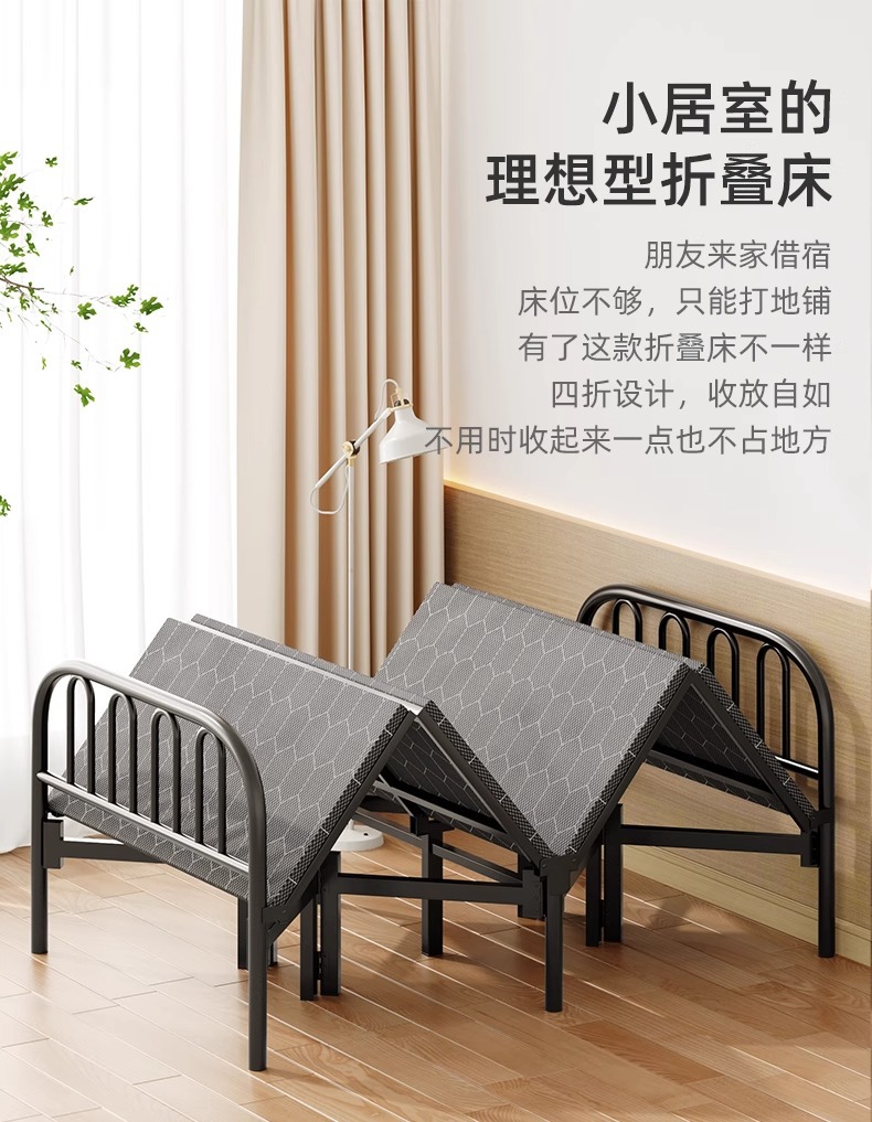 접이식 침대 현대적인 미니멀리스트 가정용 성인 싱글 더블 간이 침대 도매 점심 시간 임대 하드 보드 침대 철제 침대스토어 가기