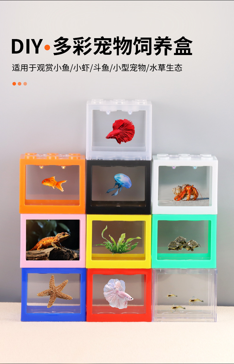아크릴 빌딩 블록 수조, 관상용 벨고어리 수조, 불가사리, 화장새우, 해파리, 창의적인 미니 반투명 빌딩 블록 수조