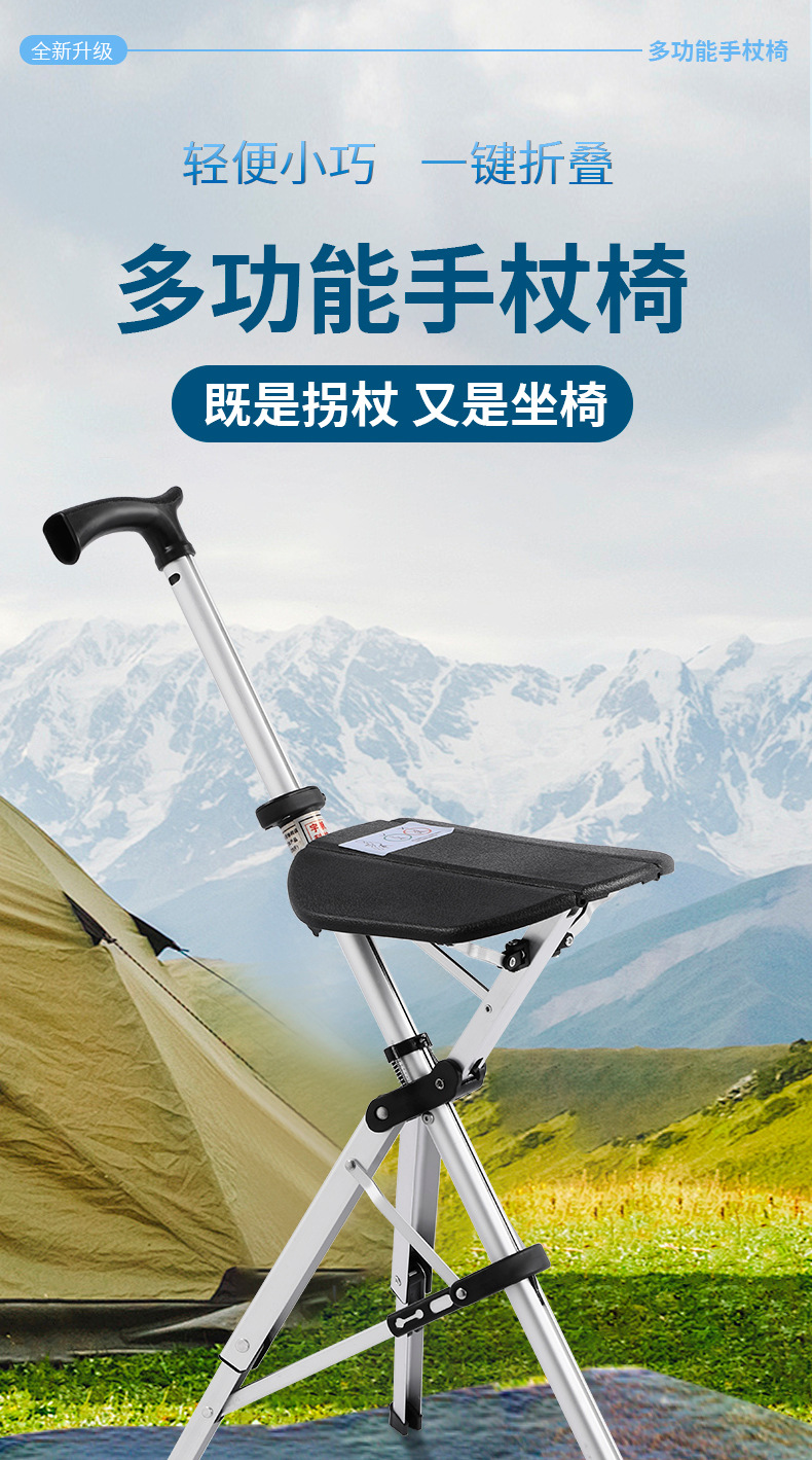 노인을 위한 국경 간 지팡이 의자, 접이식 지팡이 의자, 경량 미끄럼 방지 노인 보행 보조 의자가 있는 접이식 지팡이