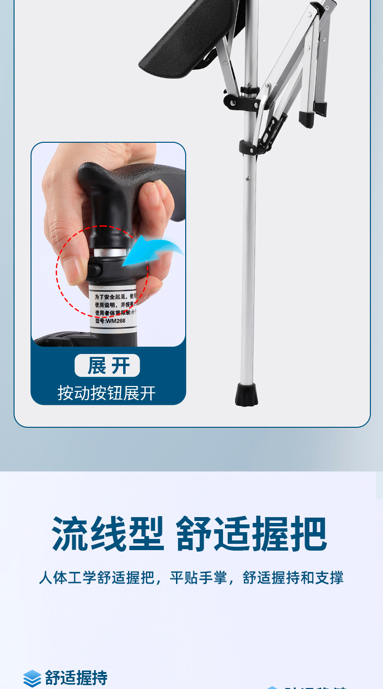 노인을 위한 국경 간 지팡이 의자, 접이식 지팡이 의자, 경량 미끄럼 방지 노인 보행 보조 의자가 있는 접이식 지팡이스토어 가기