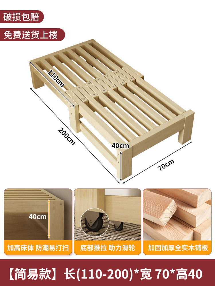 원목 텔레스코픽 침대, 소형 거실용 풀아웃 침대, 다다미 싱글 심플 푸시풀 침대, 겸용 접이식 소파베드