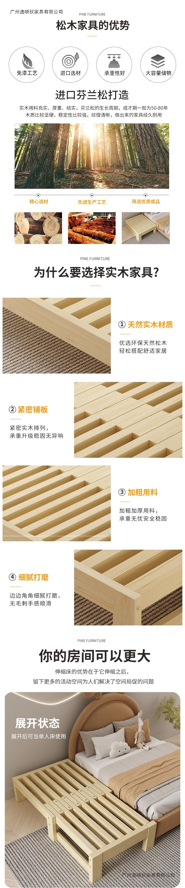 원목 텔레스코픽 침대, 소형 거실용 풀아웃 침대, 다다미 싱글 심플 푸시풀 침대, 겸용 접이식 소파베드스토어 가기