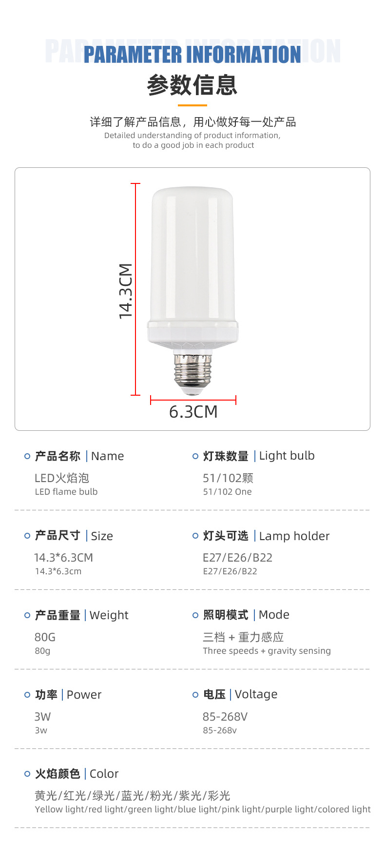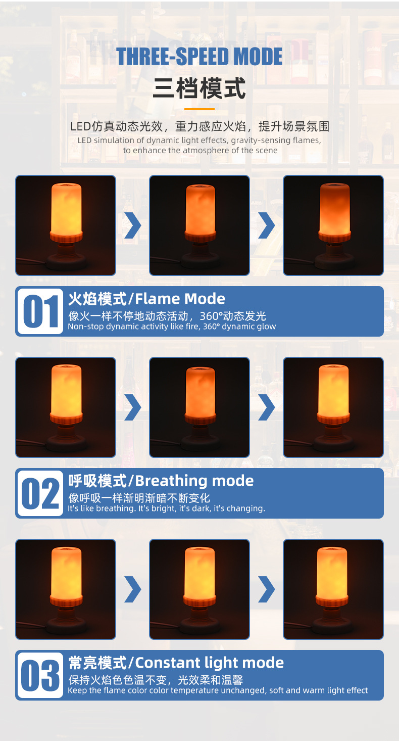 국경 간 51/102 구슬 컬러 불꽃 전구 LED 시뮬레이션 크리스마스 추수 감사절 중력 감지 분위기 조명