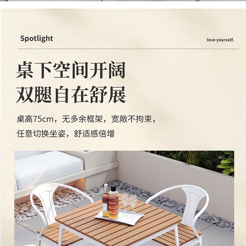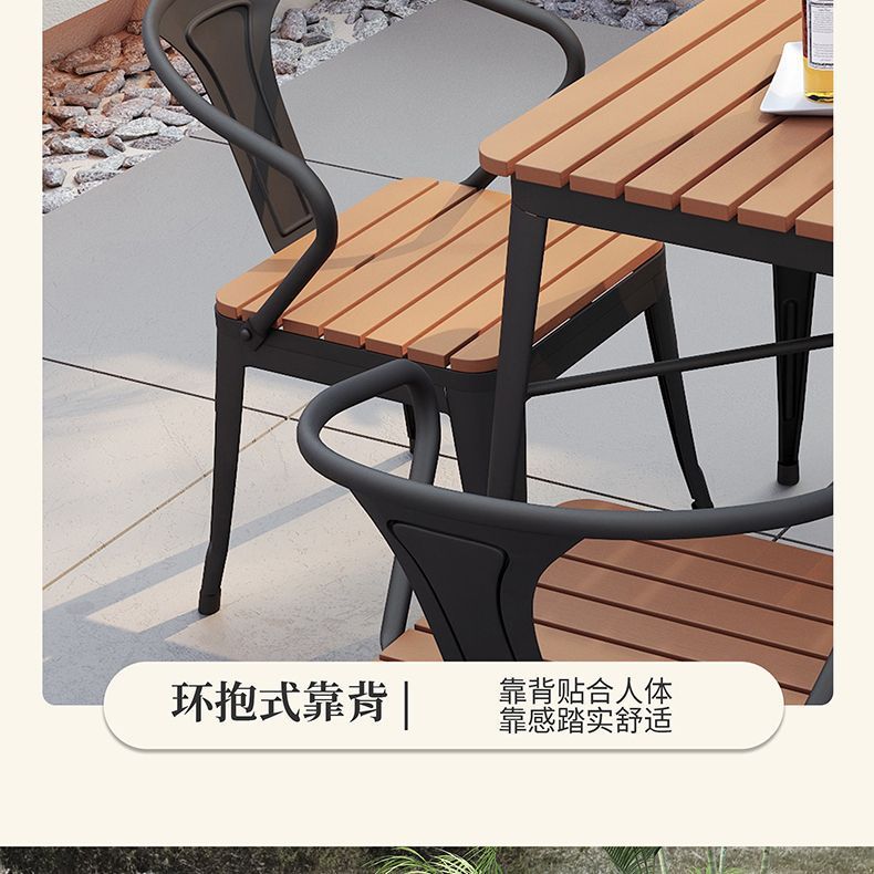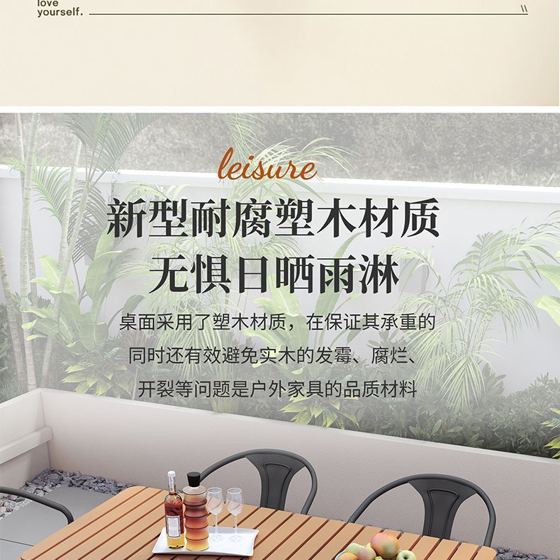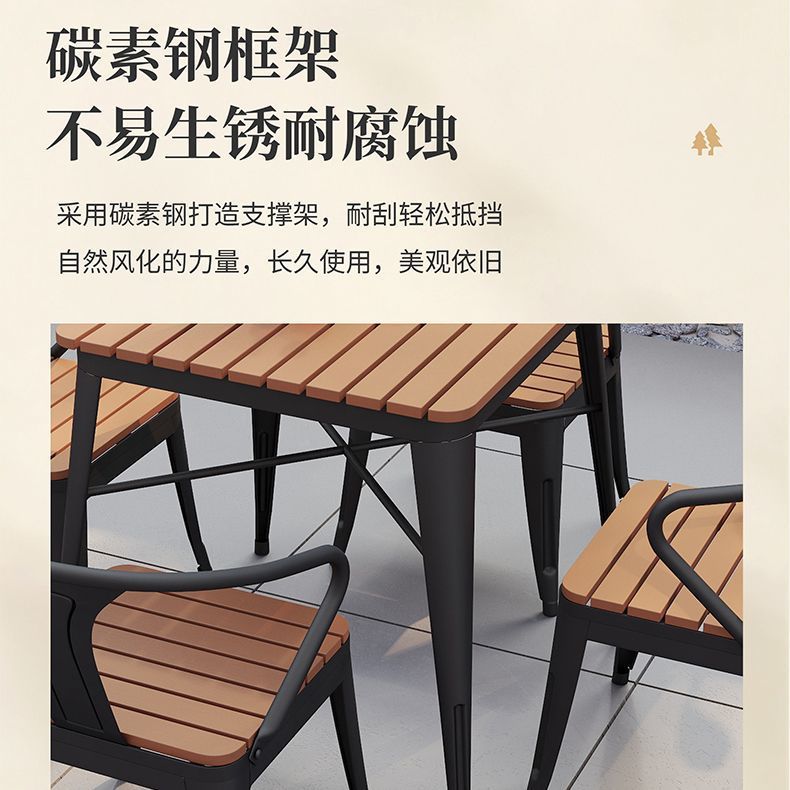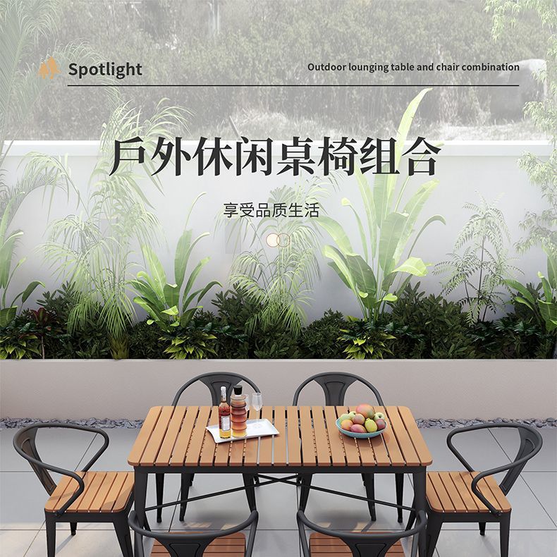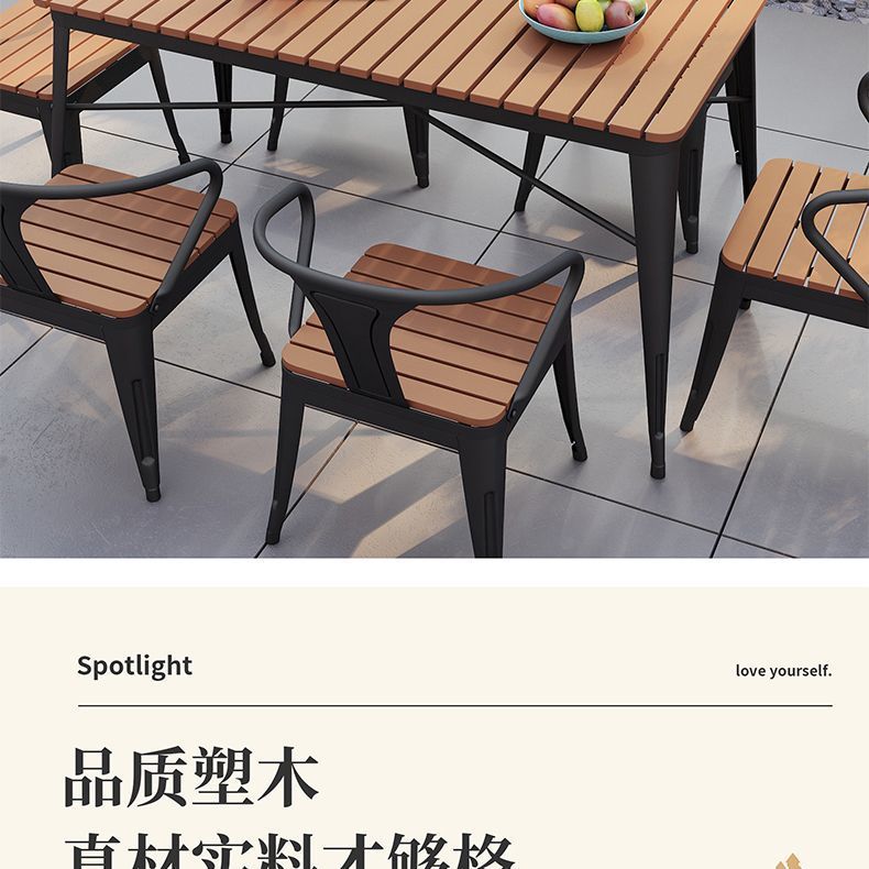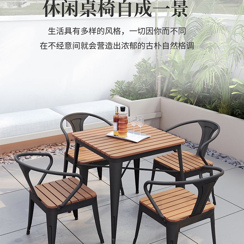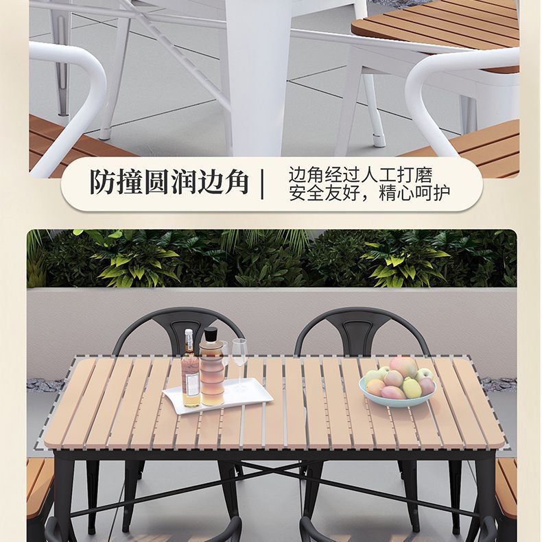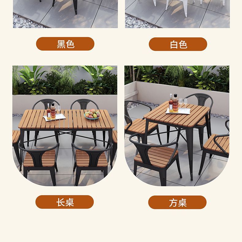 야외 안뜰 테이블과 의자 조합 야외 야외 바베큐 레스토랑 테이블과 의자 방수 플라스틱 목재 발코니 테이블 레저 식탁과 의자