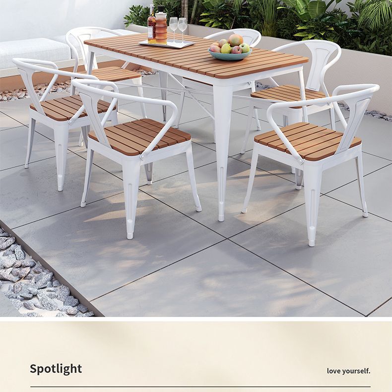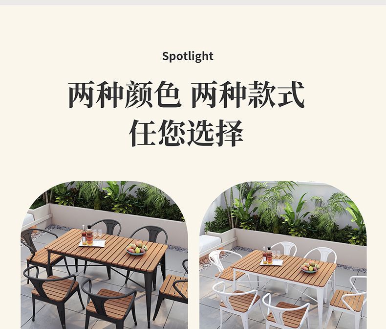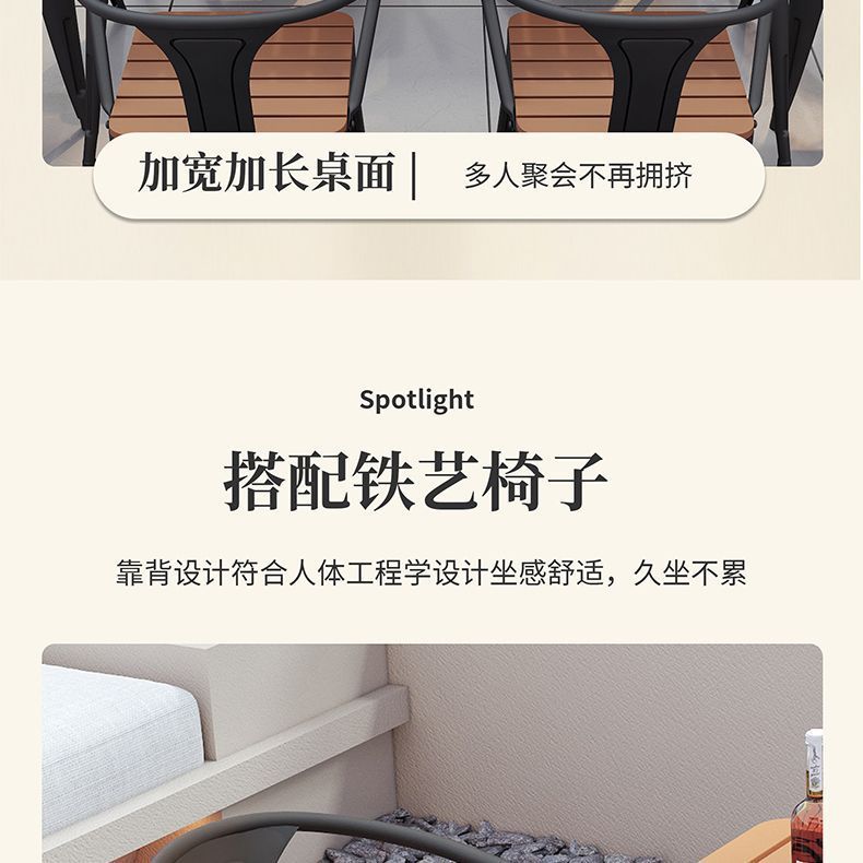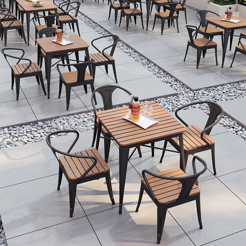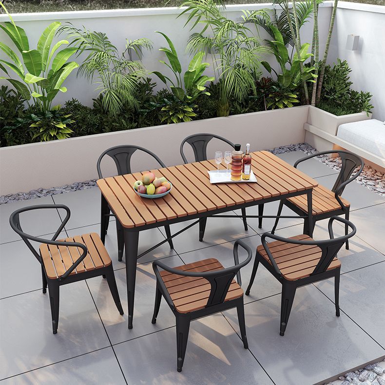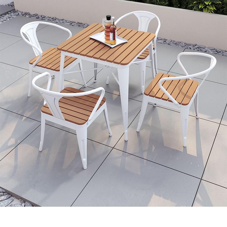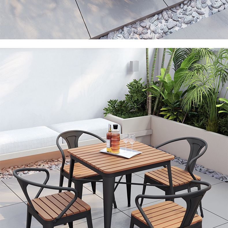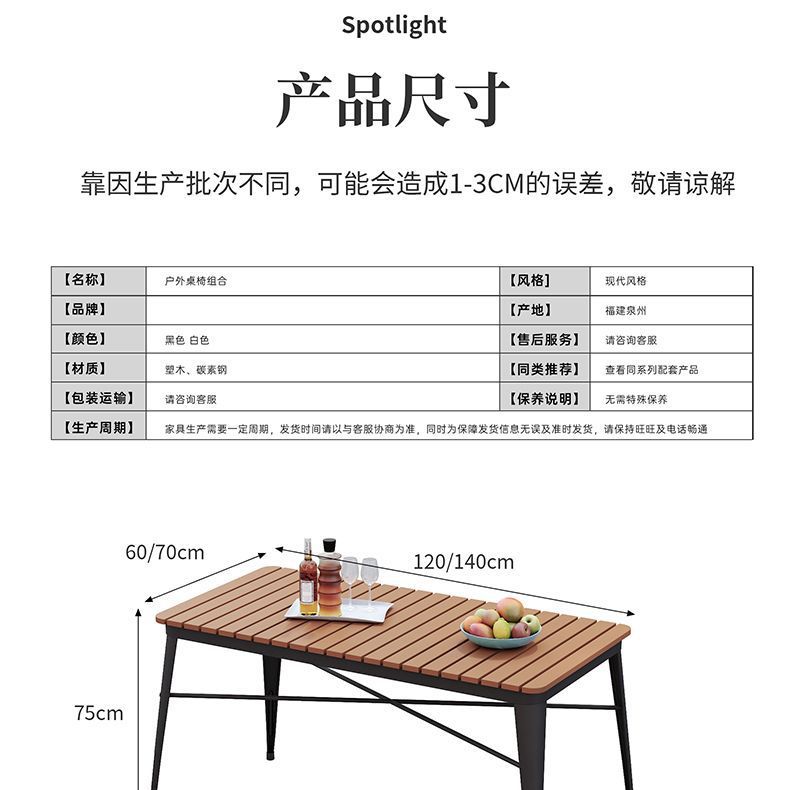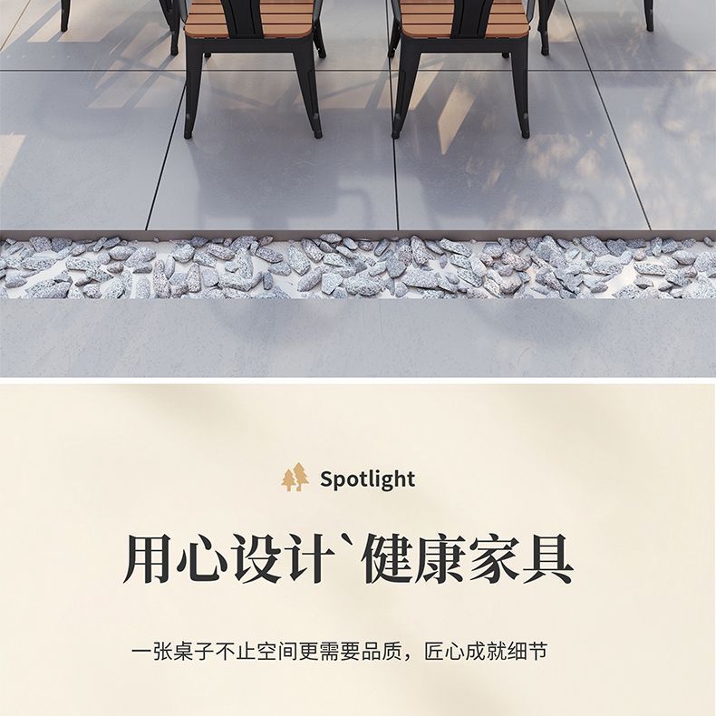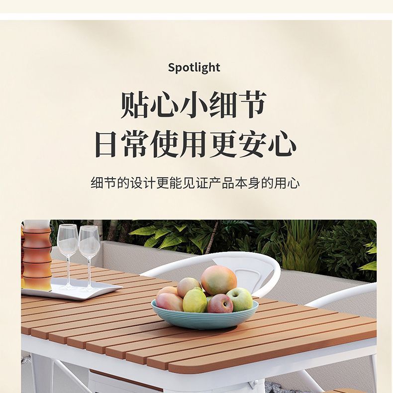 야외 안뜰 테이블과 의자 조합 야외 야외 바베큐 레스토랑 테이블과 의자 방수 플라스틱 목재 발코니 테이블 레저 식탁과 의자