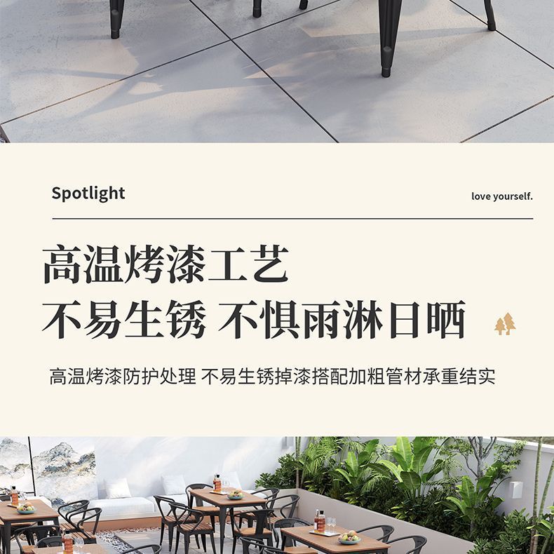 야외 안뜰 테이블과 의자 조합 야외 야외 바베큐 레스토랑 테이블과 의자 방수 플라스틱 목재 발코니 테이블 레저 식탁과 의자스토어 가기