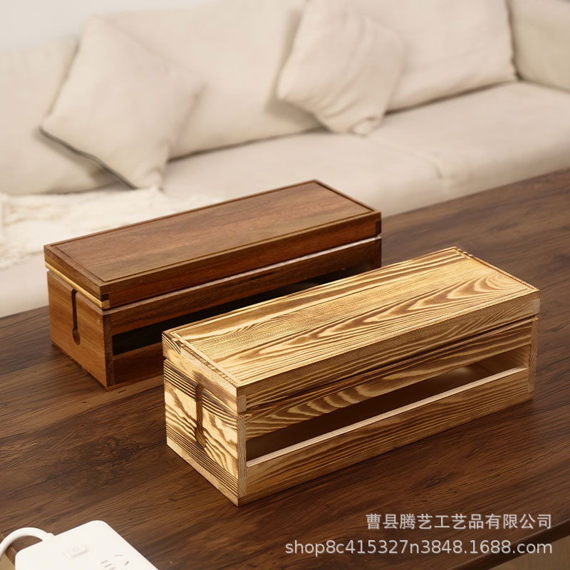 크리 에이 티브 간단한 가정용 소나무 와이어 보관 상자 거실 플러그인 보드 티 시트 플러그인 보관 상자 단단한 나무 상자 나무 포장