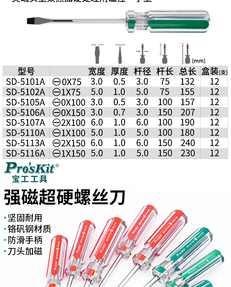대만 Baogong 십자 드라이버 SD-5101 시리즈 강력한 자기 드라이버 싱글 십자 드라이버스토어 가기
