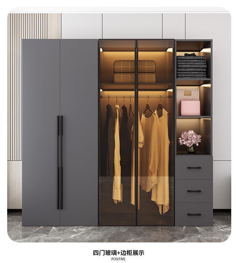 옷장 홈 침실 단단한 나무 가벼운 고급 스토리지 간단한 유리 도어 조합 캐비닛 현대 간단한 맞춤형 대형 옷장스토어 가기