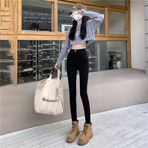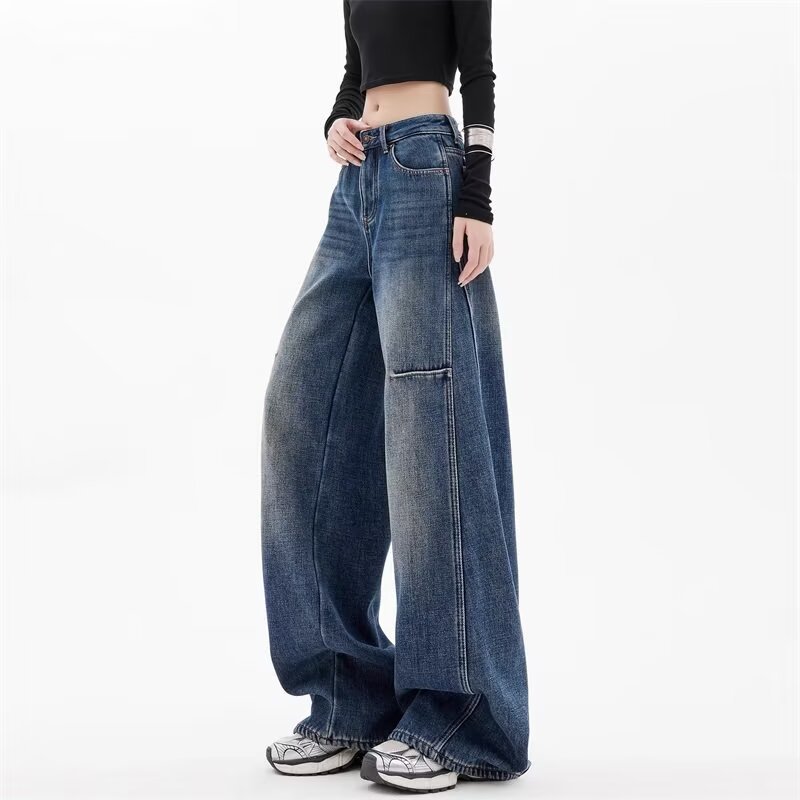 뚱뚱한 여성을 위한 세이버 스트레이트 청바지, 아메리칸 와이드 팬츠, 루즈한 플러스 사이즈 여성복, 배형 몸매 커버 바닥 길이 바지스토어 가기