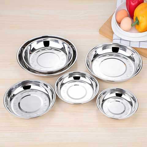 ✅ 304 스테인레스 스틸 접시, 가정용 두꺼운 원형 얕은 접시, 스테인레스 스틸 접시, 바베큐 접시, 깊은 접시, 스낵스토어 가기