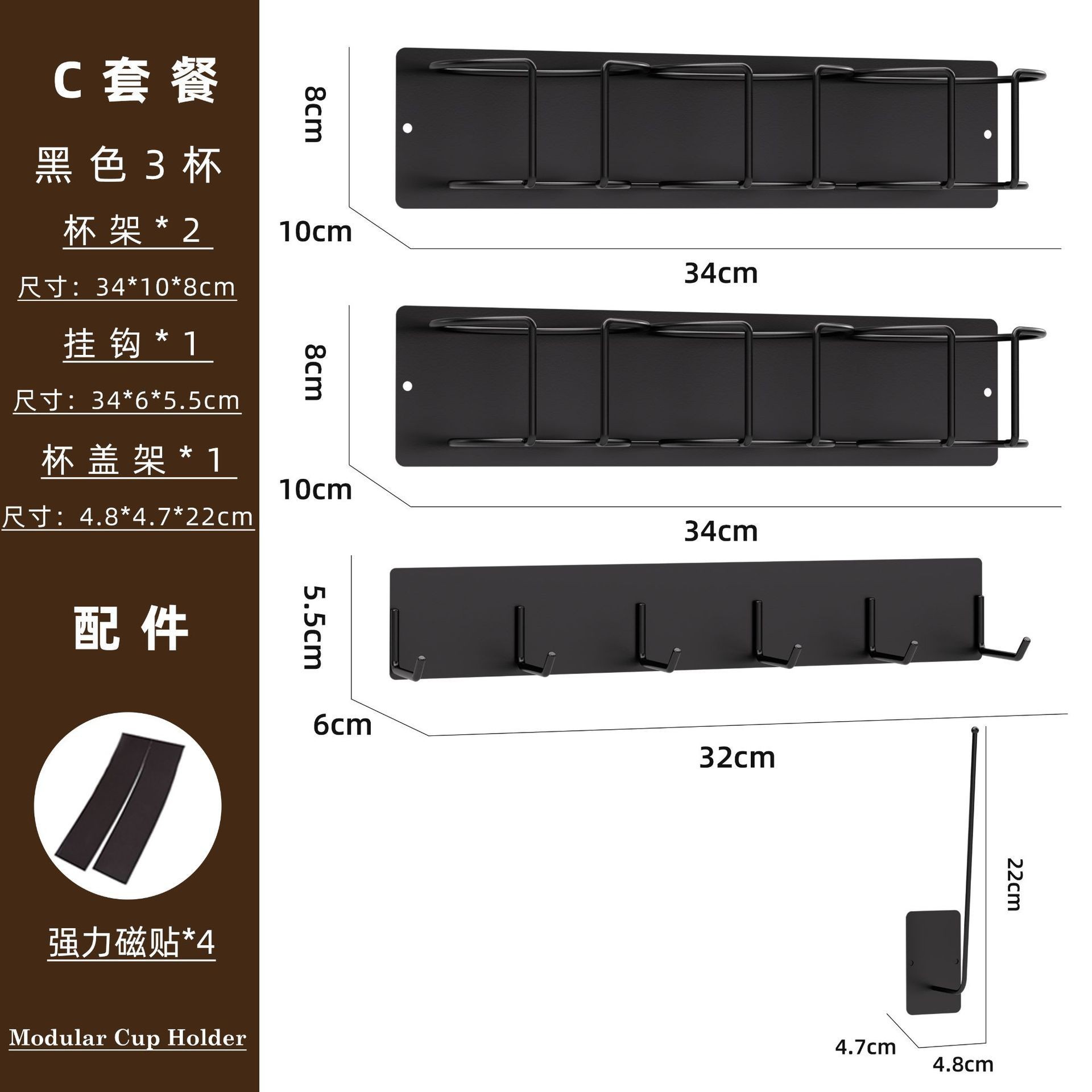 • 2컵*2+컵 뚜껑 홀더 맞춤형 검정색
