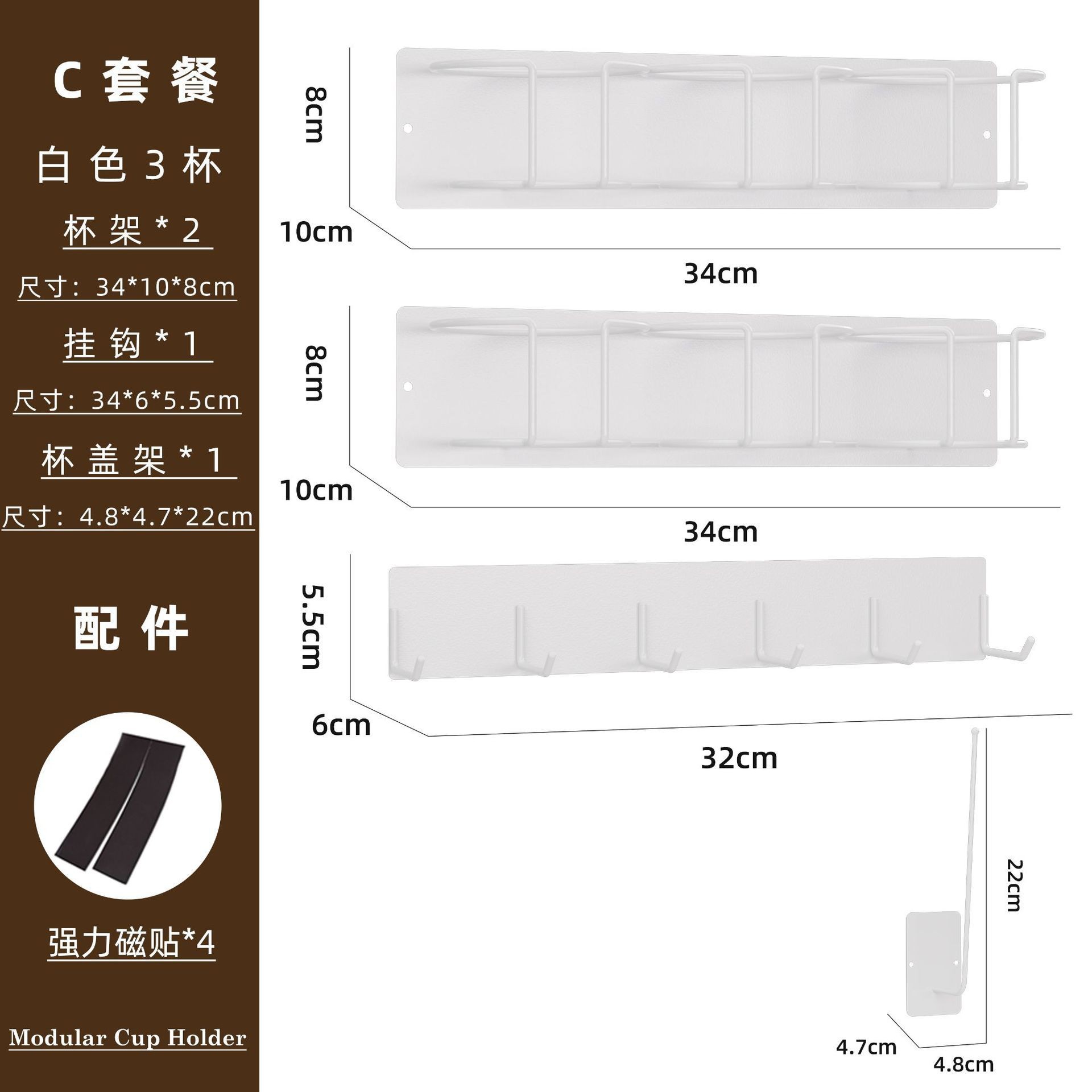 • 2컵*2+컵 뚜껑 홀더 맞춤형 흰색