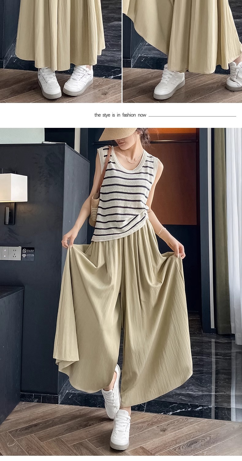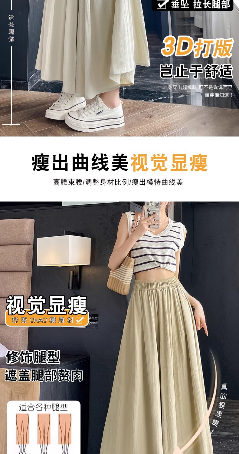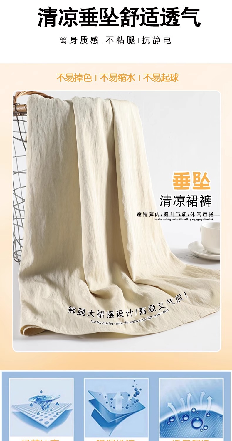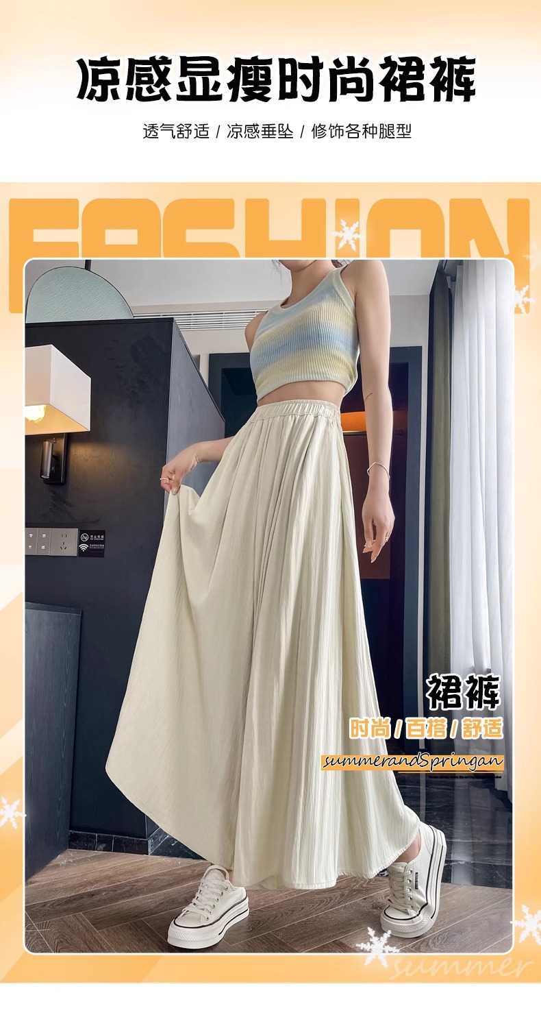 야마모토 퀼로트 여성 여름 2025 신상 하이웨이스트 슬림 A라인 스커트 캐주얼 스몰 아이스 실크 와이드 팬츠스토어 가기
