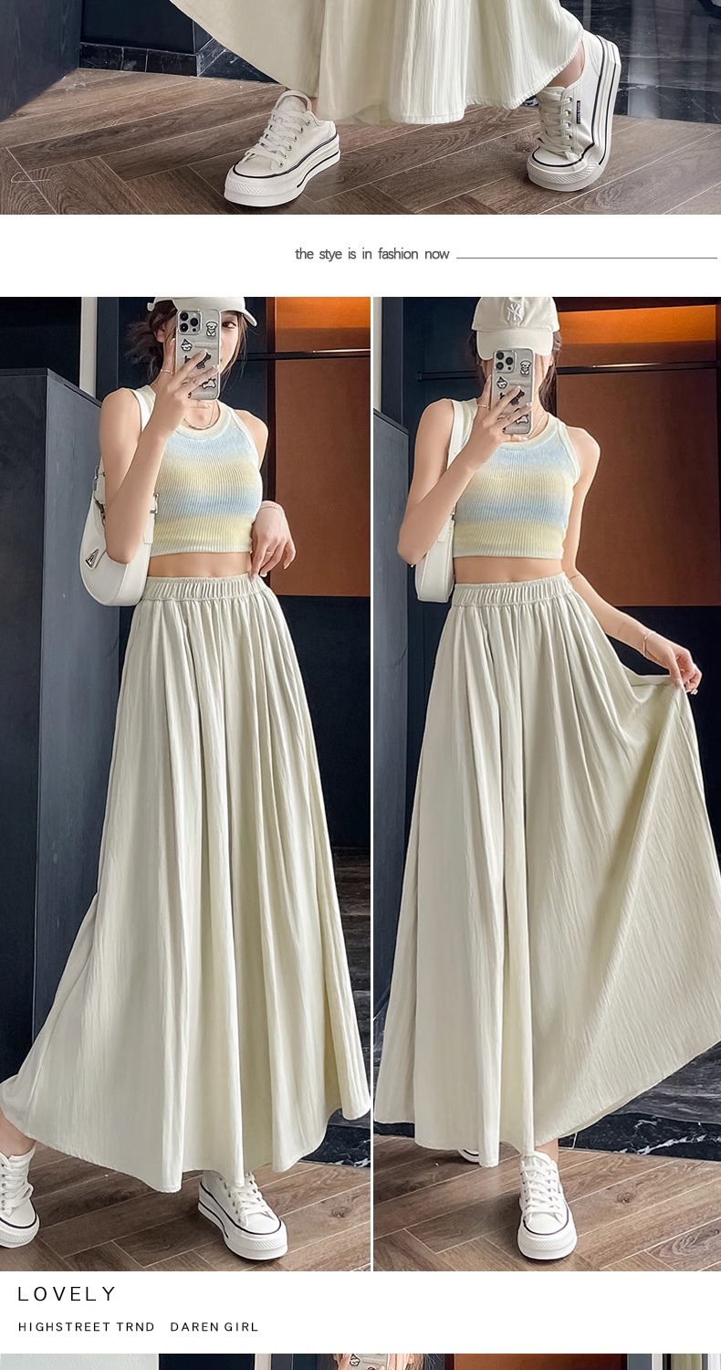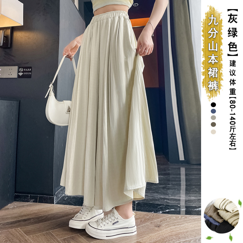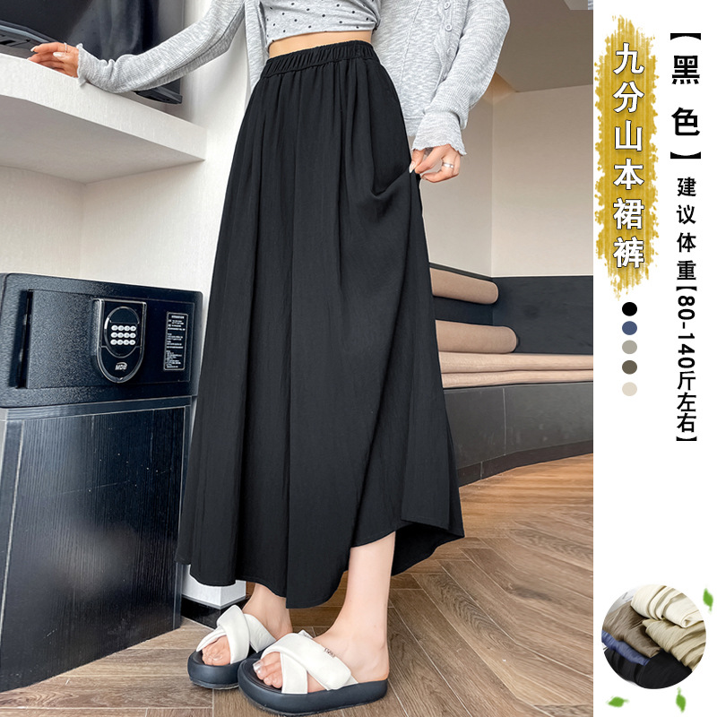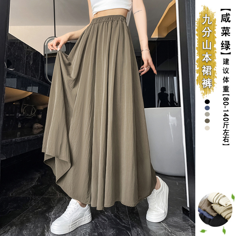 야마모토 퀼로트 여성 여름 2025 신상 하이웨이스트 슬림 A라인 스커트 캐주얼 스몰 아이스 실크 와이드 팬츠