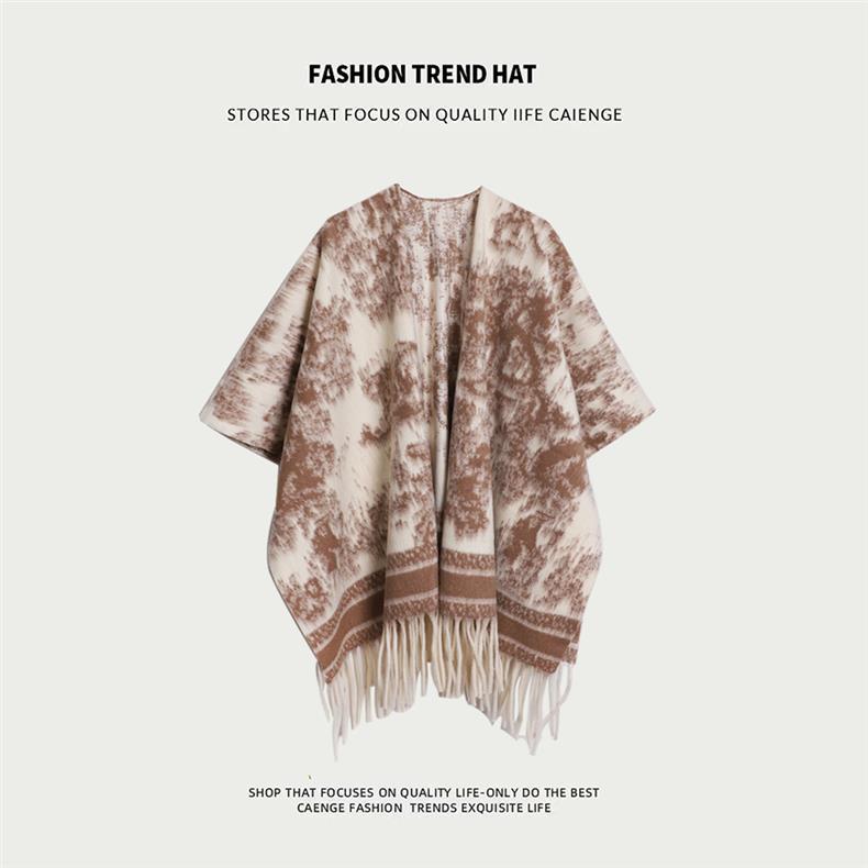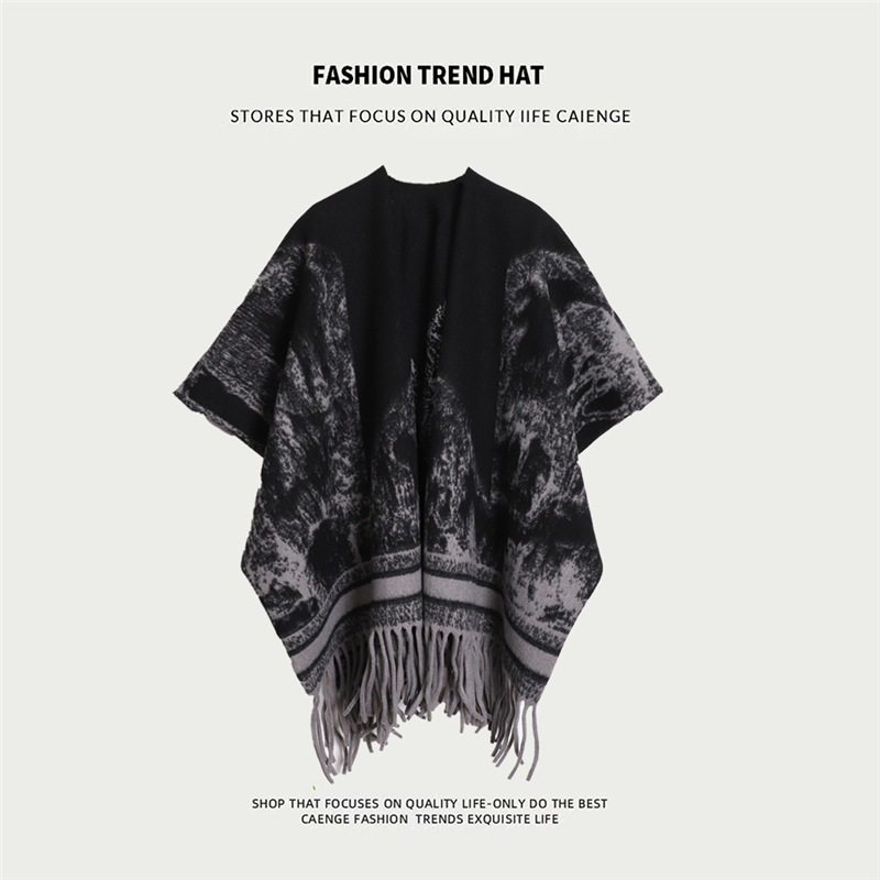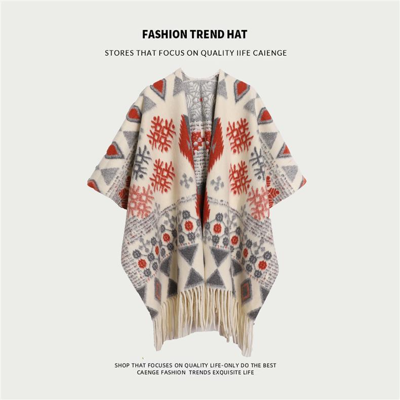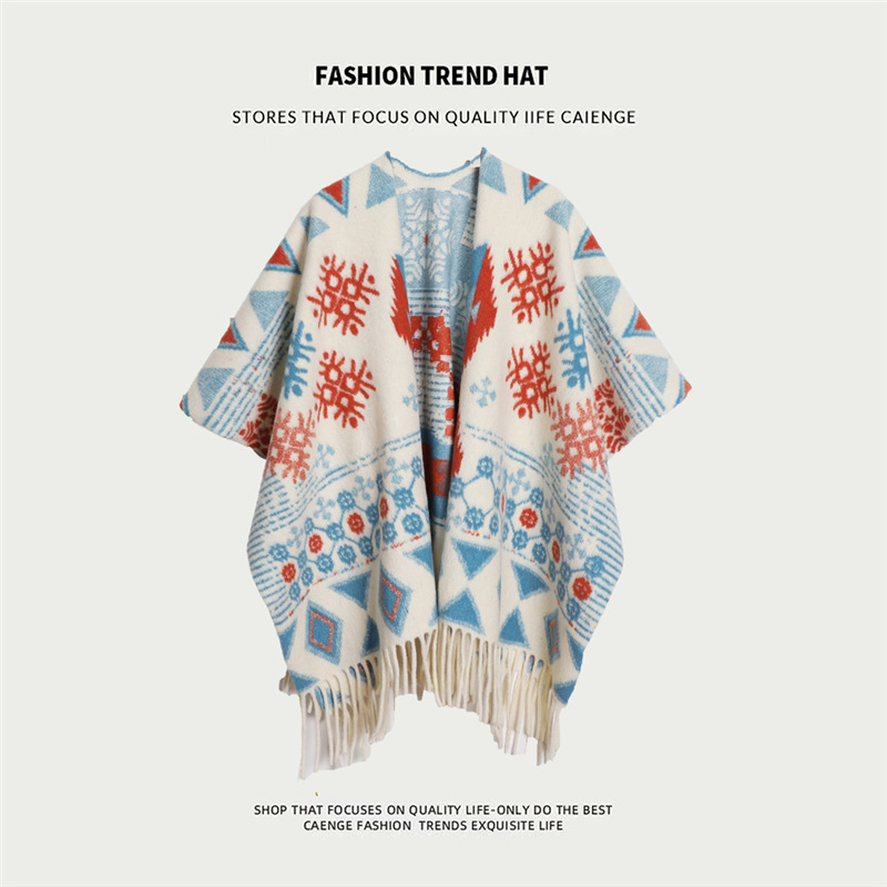 가을 겨울 여성용 세리무 호수 관광 슬릿 숄, 두꺼운 오버사이즈 코트, 에어컨이 있는 방의 방한 망토, 남성용 담요스토어 가기