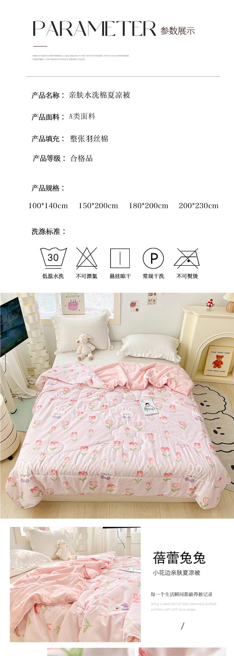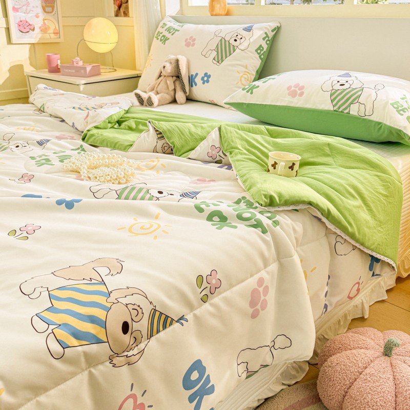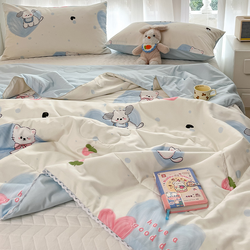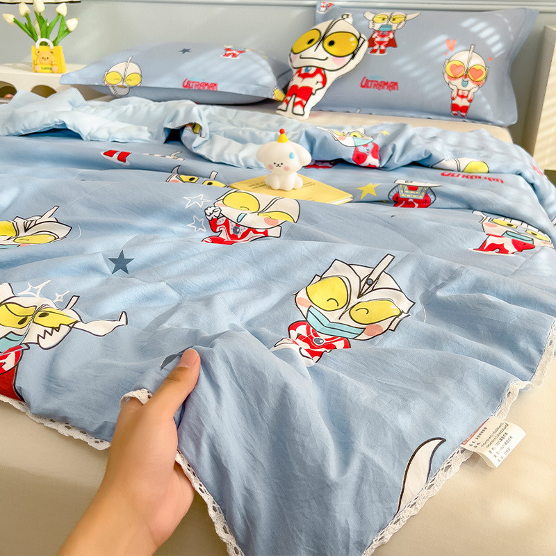 클래스 A 여름 이불 워시 코튼 여름 시원한 이불 에어컨 이불 기숙사 싱글 어린이 얇은 봄, 가을 이불 코어 기계 세탁 가능 여름