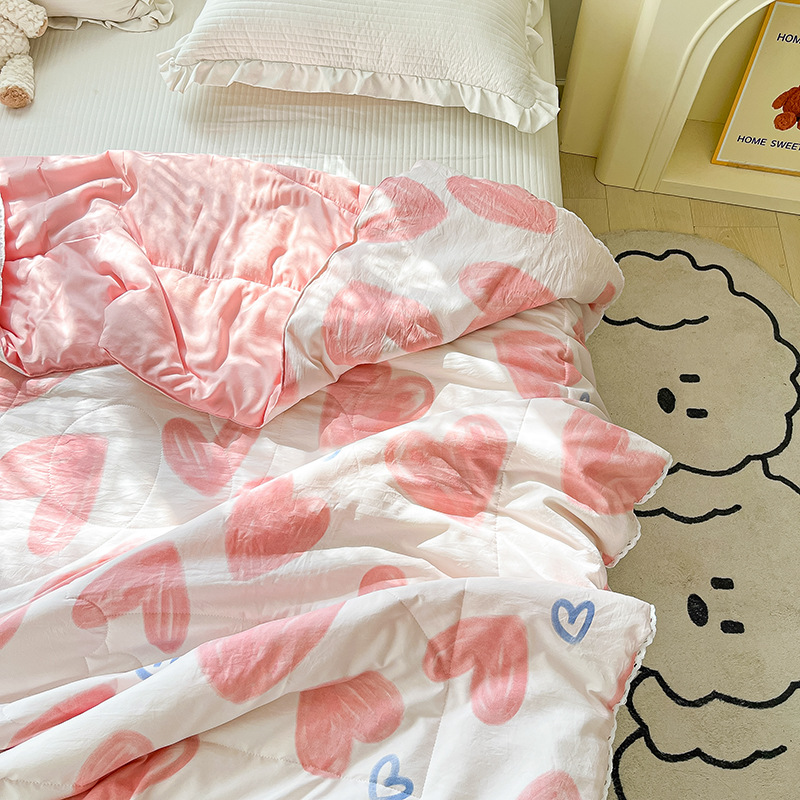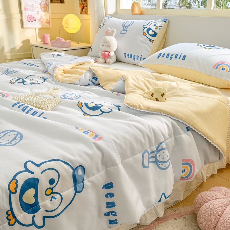 클래스 A 여름 이불 워시 코튼 여름 시원한 이불 에어컨 이불 기숙사 싱글 어린이 얇은 봄, 가을 이불 코어 기계 세탁 가능 여름스토어 가기