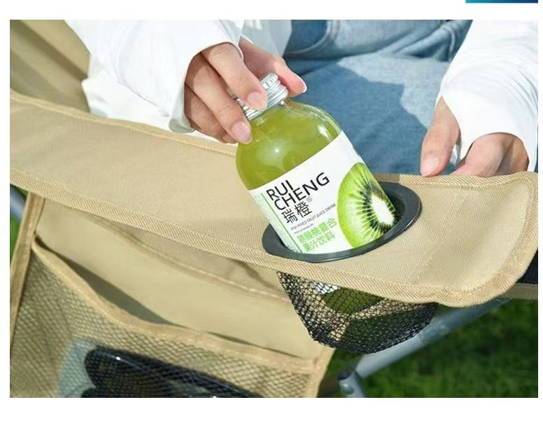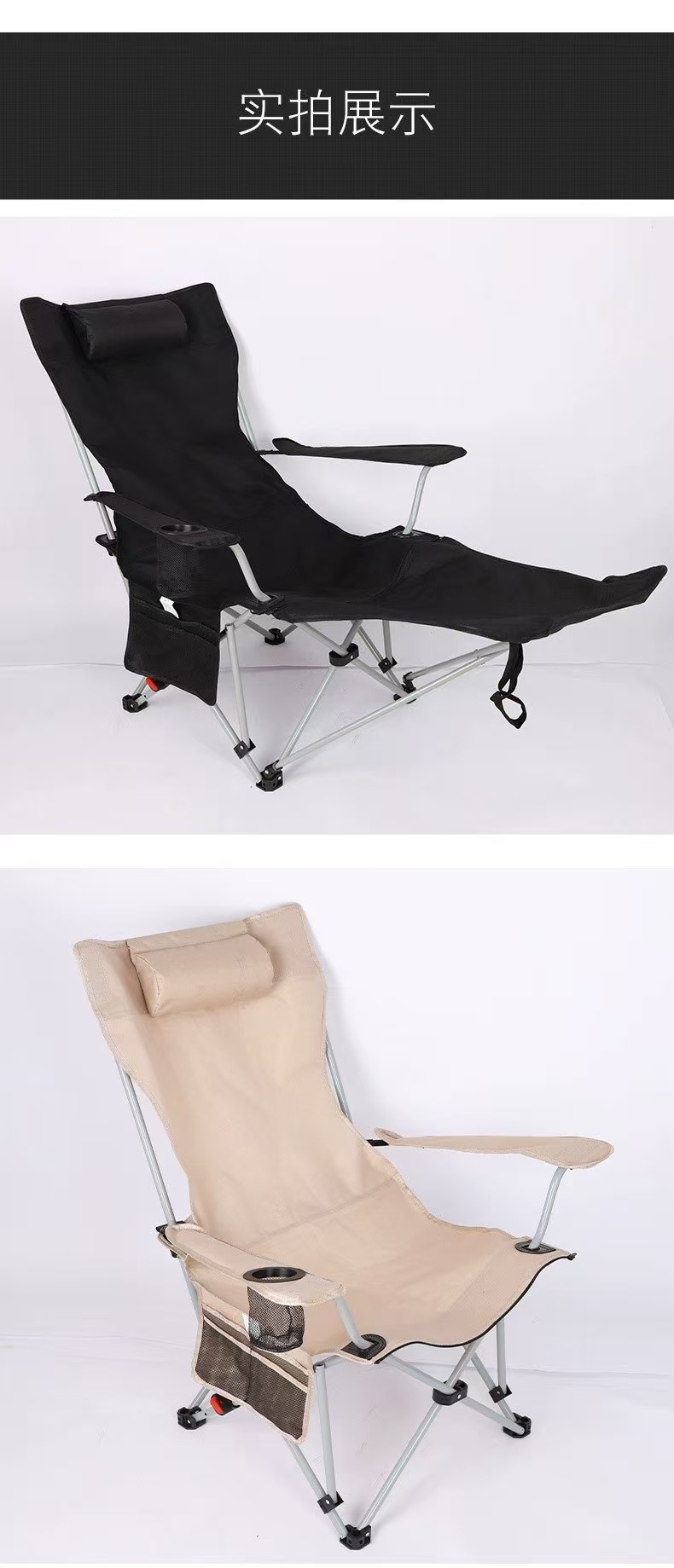 야외 안락 의자 캠핑 점심 시간 접이식 의자 다단계 조절 가능한 캠핑 휴대용 다리 받침대 팔걸이 접이식 안락 의자