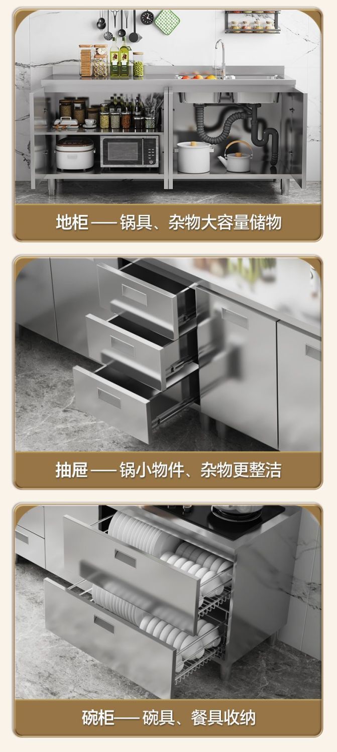 304 스테인레스 스틸 캐비닛 두꺼운 전체 주방 캐비닛 설치가 필요없는 스토브 보관 캐비닛 심플 홈