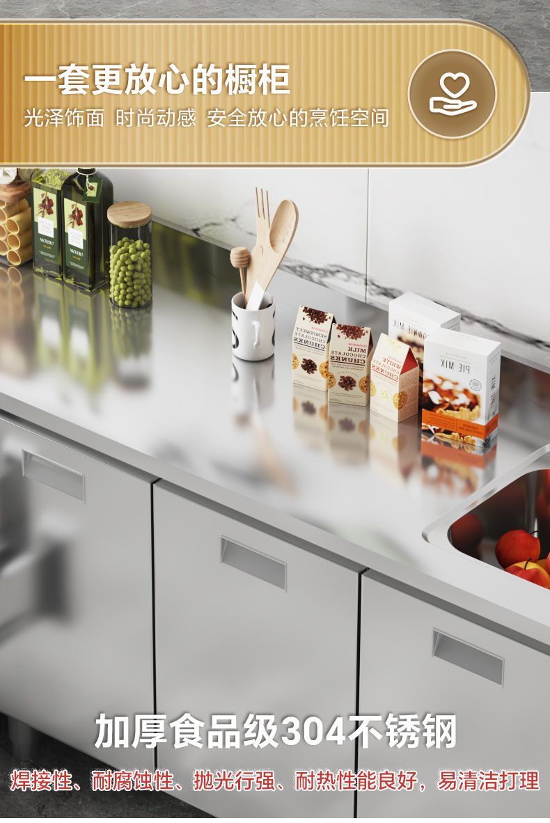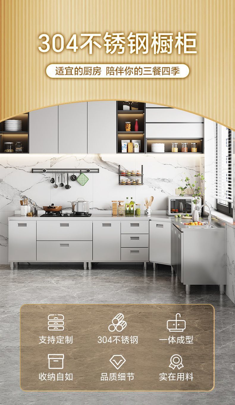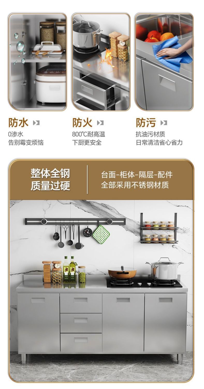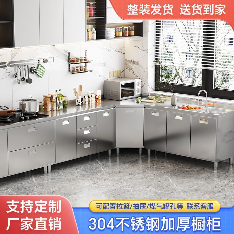 304 스테인레스 스틸 캐비닛 두꺼운 전체 주방 캐비닛 설치가 필요없는 스토브 보관 캐비닛 심플 홈스토어 가기