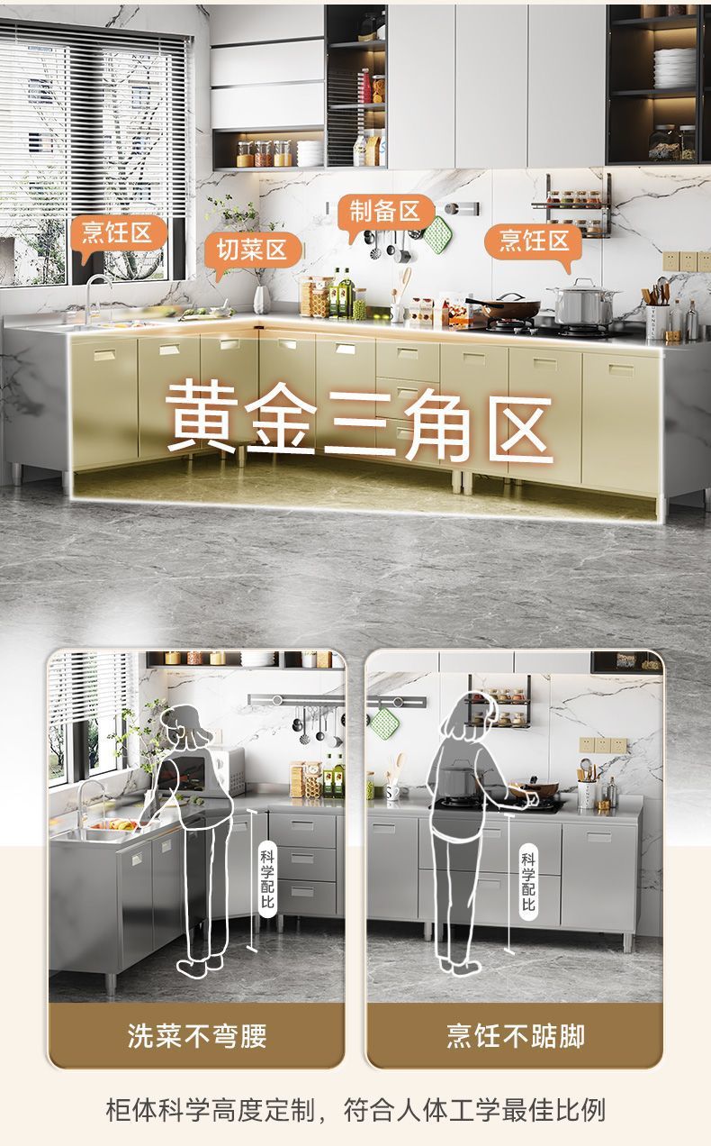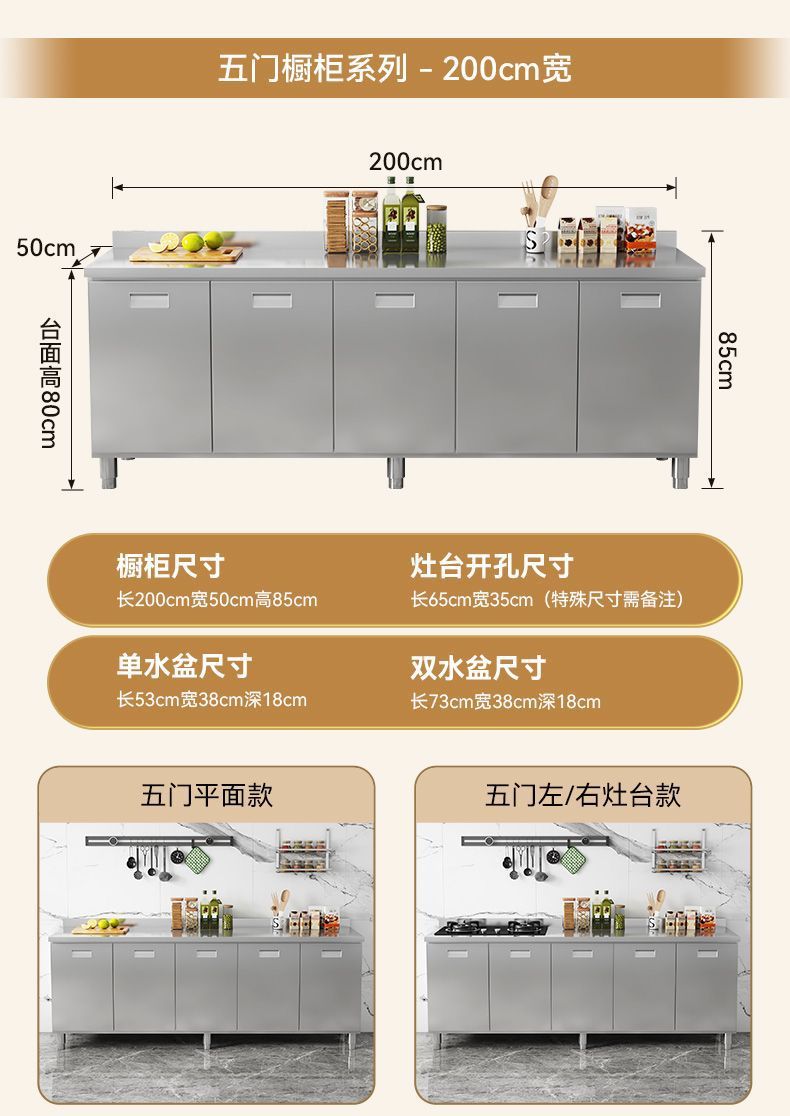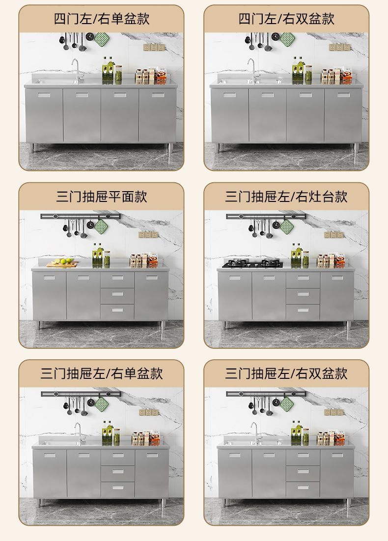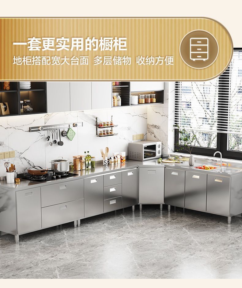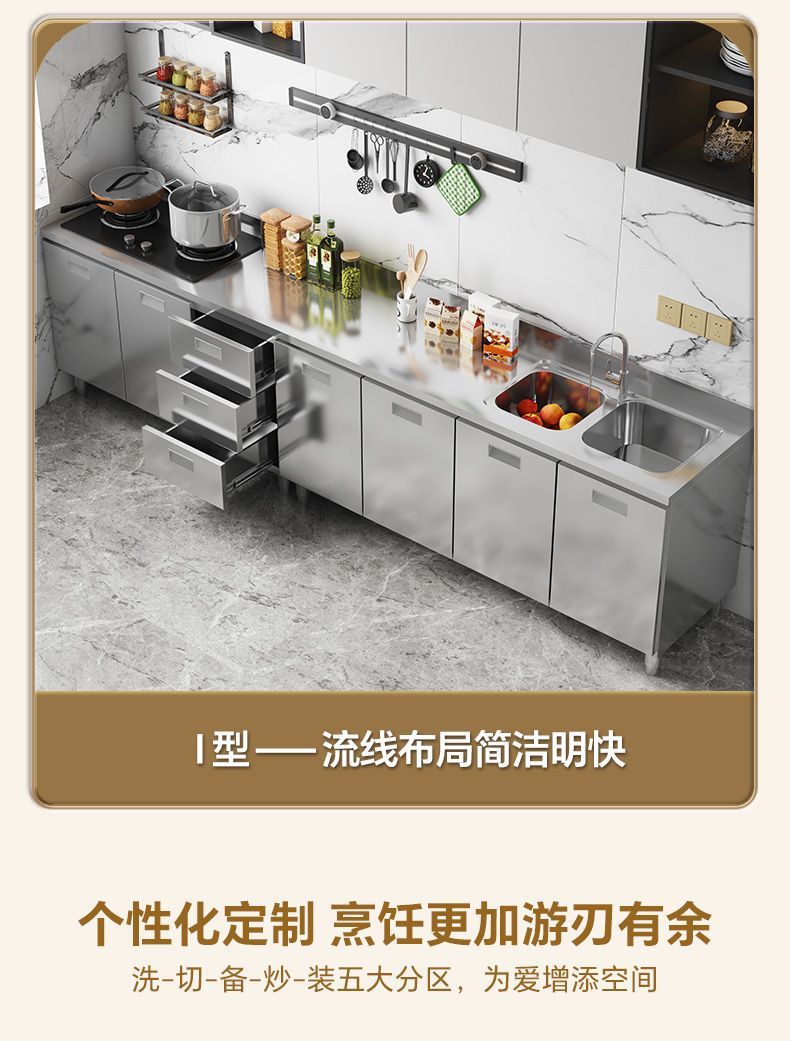 304 스테인레스 스틸 캐비닛 두꺼운 전체 주방 캐비닛 설치가 필요없는 스토브 보관 캐비닛 심플 홈스토어 가기