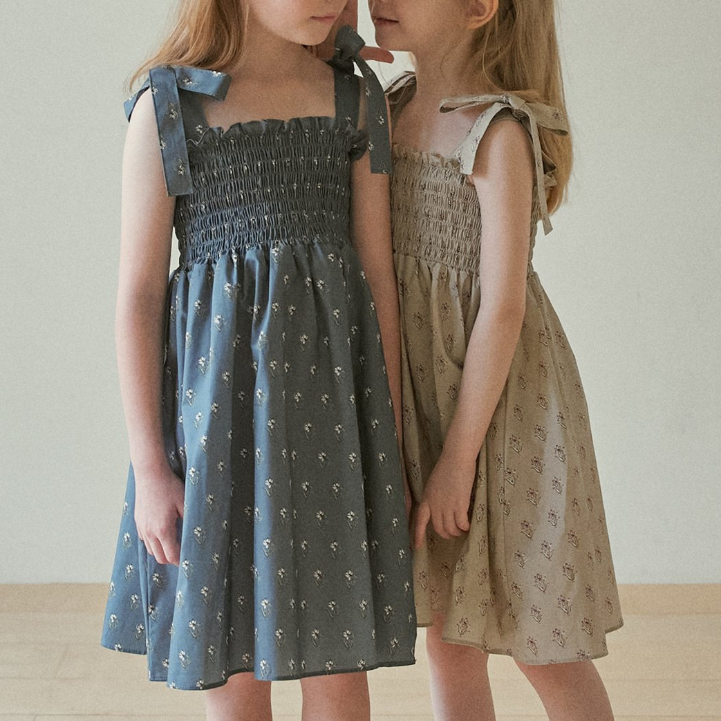 여아의 달콤한 꽃무늬 드레스, 여름 신상품, 여아의 리본 스커트, 패셔너블한 한국식 서스펜더 스커트스토어 가기