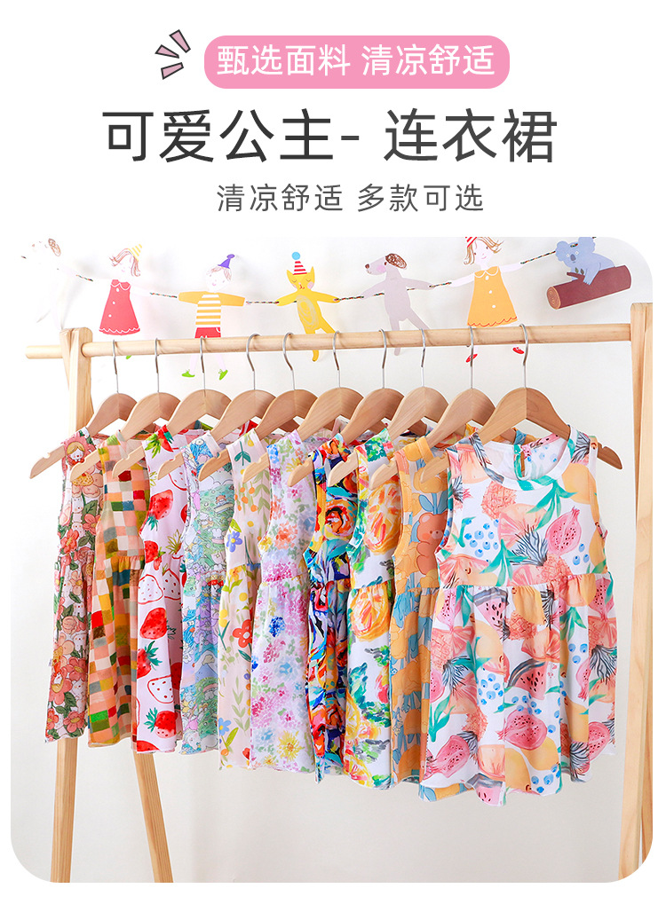 여자 여름 드레스 면 실크 새로운 스타일 어린이 공주 드레스 조끼 드레스 한국 스타일 여자 스커트 아동 의류 도매