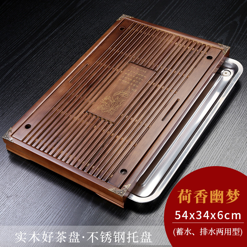 단단한 나무 차 트레이 세트 가정용 차 트레이 가정용 쿵푸 차 세트 배수 저장 단일 트레이 차 트레이가있는 차 테이블