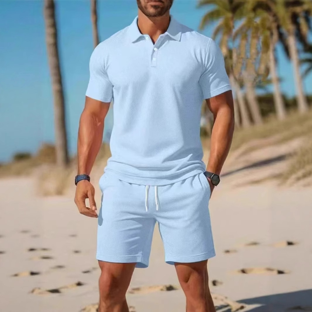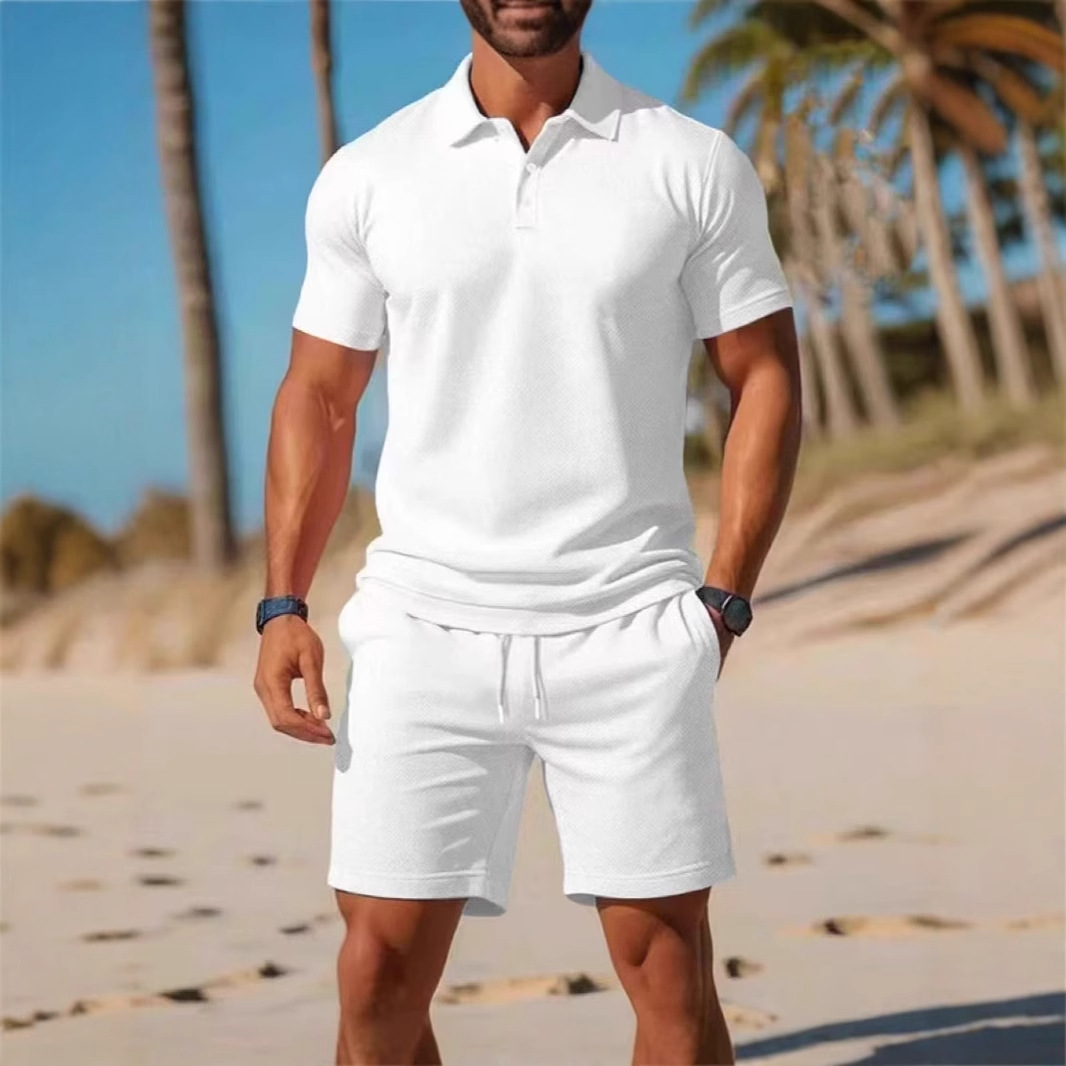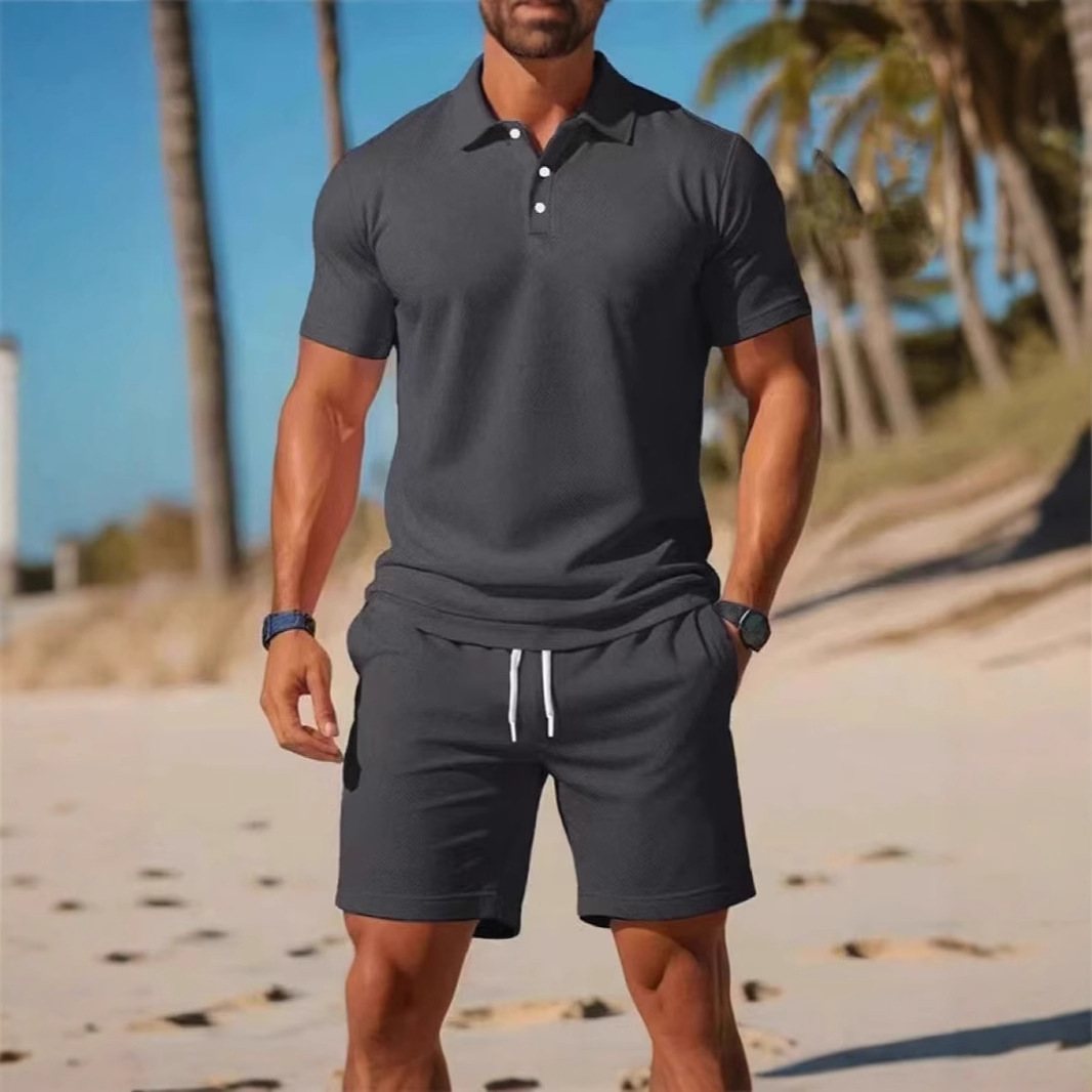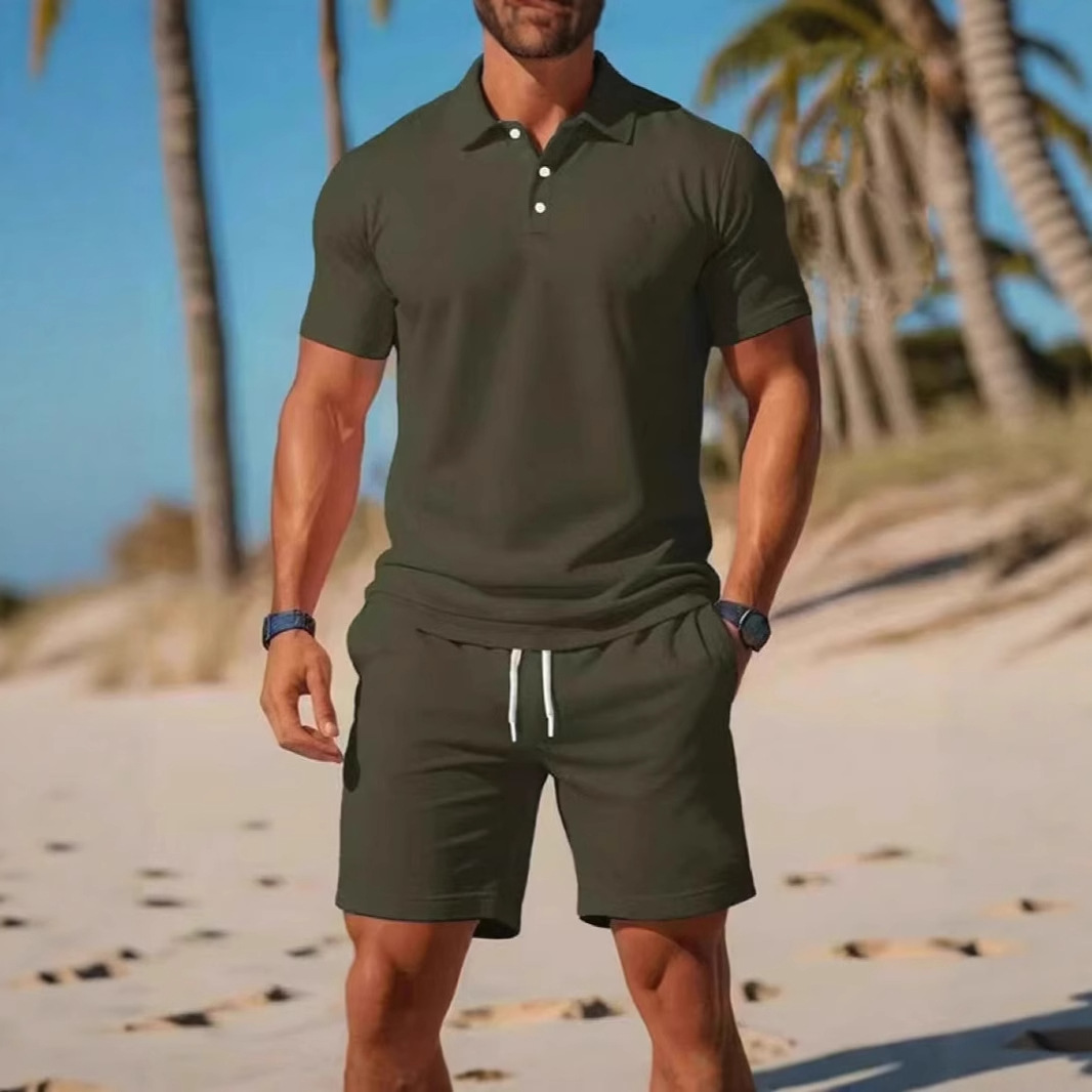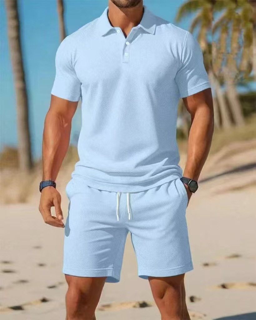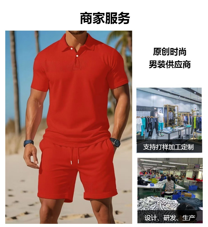 대외 무역 크로스보더 남성 유럽과 미국 여름 정장 남성 반팔 폴로 셔츠 + 반바지 야외 스포츠를위한 투피스 세트