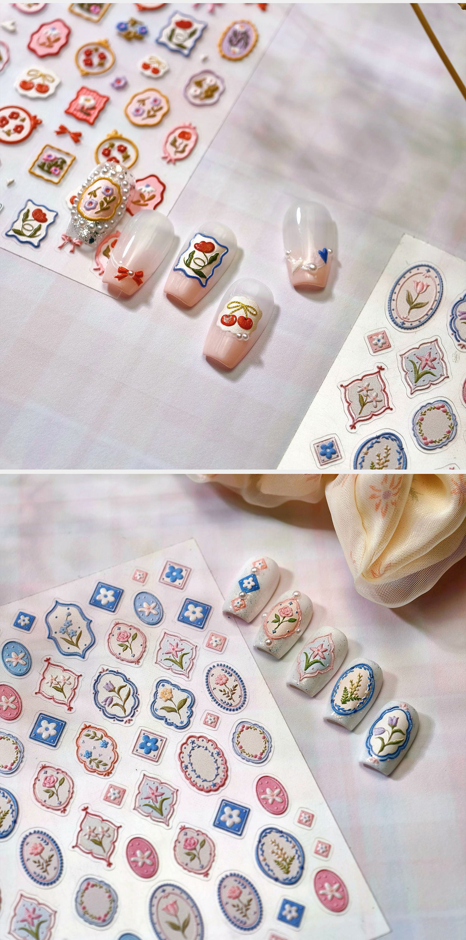 철 복고풍 신선한 사진 프레임 활 TS4078 목가적 인 꽃 체리 접착제 네일 스티커 3d 어린이 사용 가능